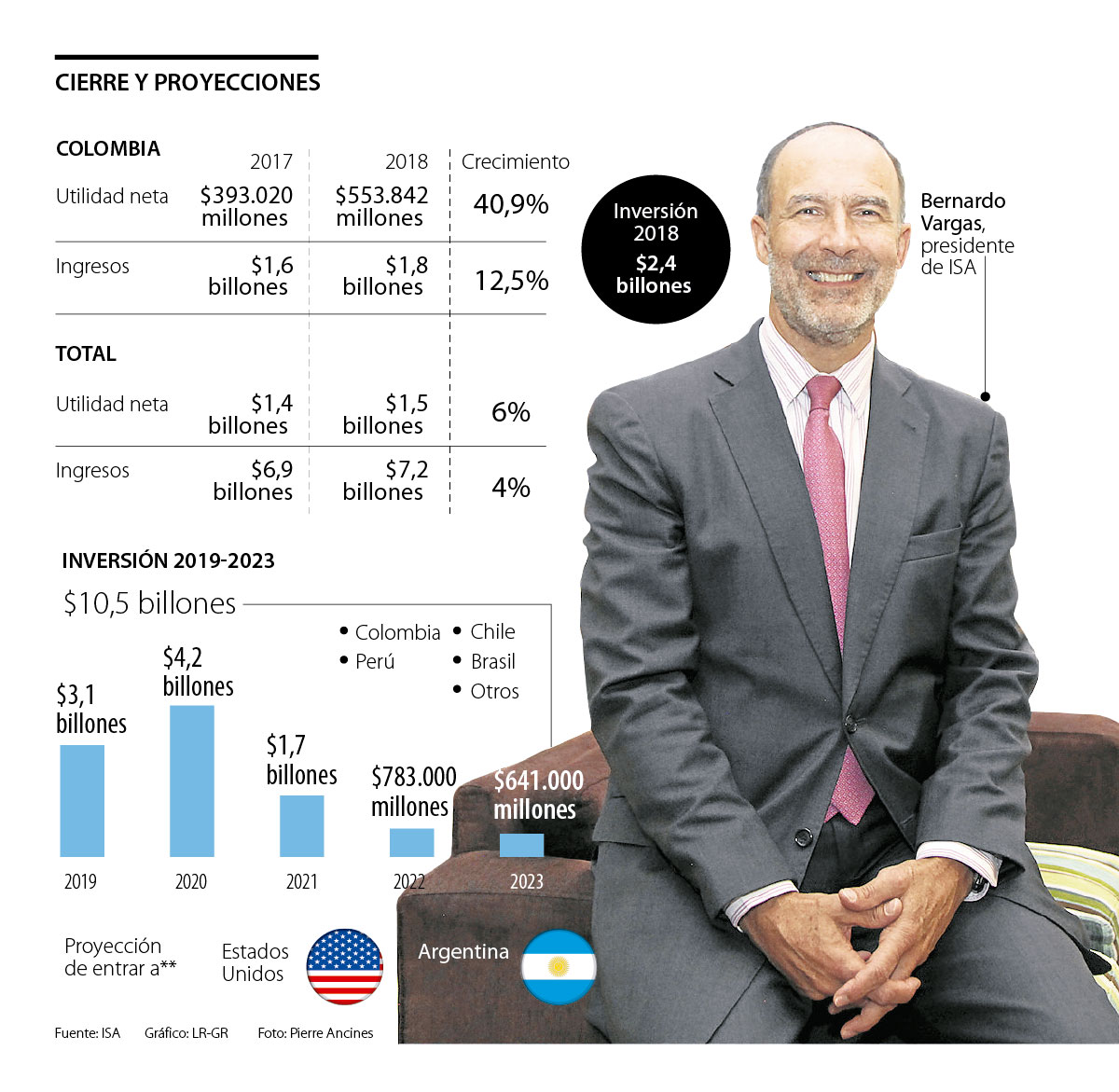 Un movimiento similar se vio reflejado en el Ebitda de la compañía, que pasó de $4,3 billones en 2017 a $4,8 billones en 2018. En exclusiva con LR, Bernardo Vargas, presidente de ISA, dijo que este cierre financiero es el primer paso para poner en marcha un plan de expansión a 2030 que incluye la llegada de la compañía a Estados Unidos.