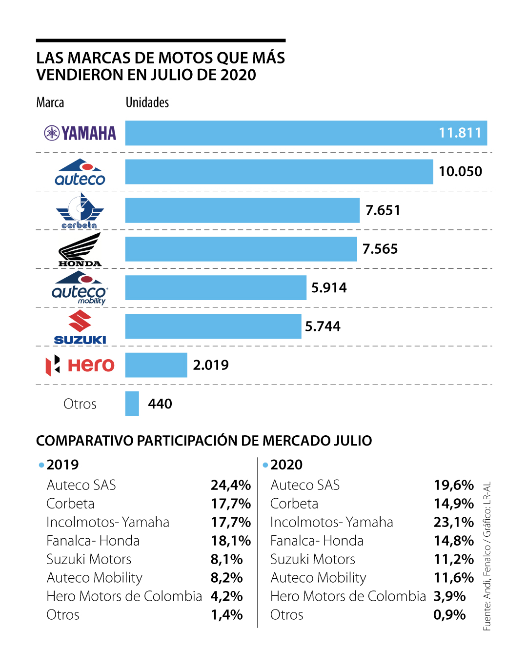 Cabe recordar que en abril la industria presentó un decrecimiento de 99,6%, respecto al mismo mes de 2019, y aunque en junio se matricularon 37.445 motocicletas, lo que más que duplicó las cifras de abril, en el séptimo mes del año fue la primera vez en pandemia que el mercado de las motos superó las 50.000 unidades.
