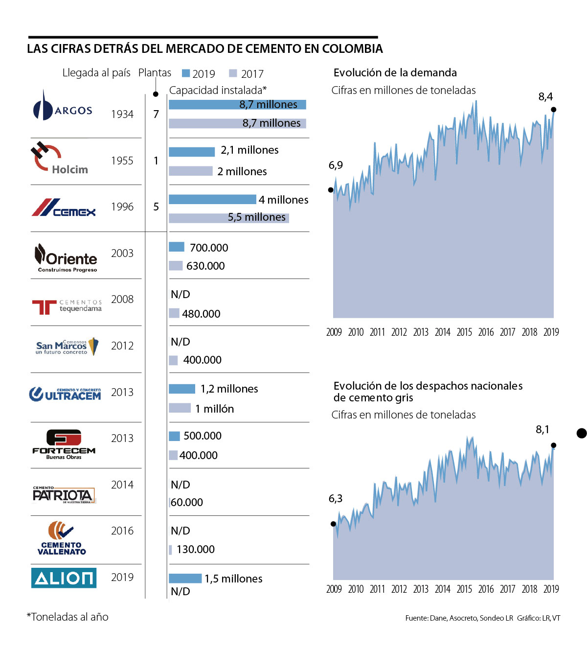 Desde 2010 la capacidad instalada de las plantas ha crecido pasando de 6,1 millones de toneladas a 8,4 millones, según el Dane