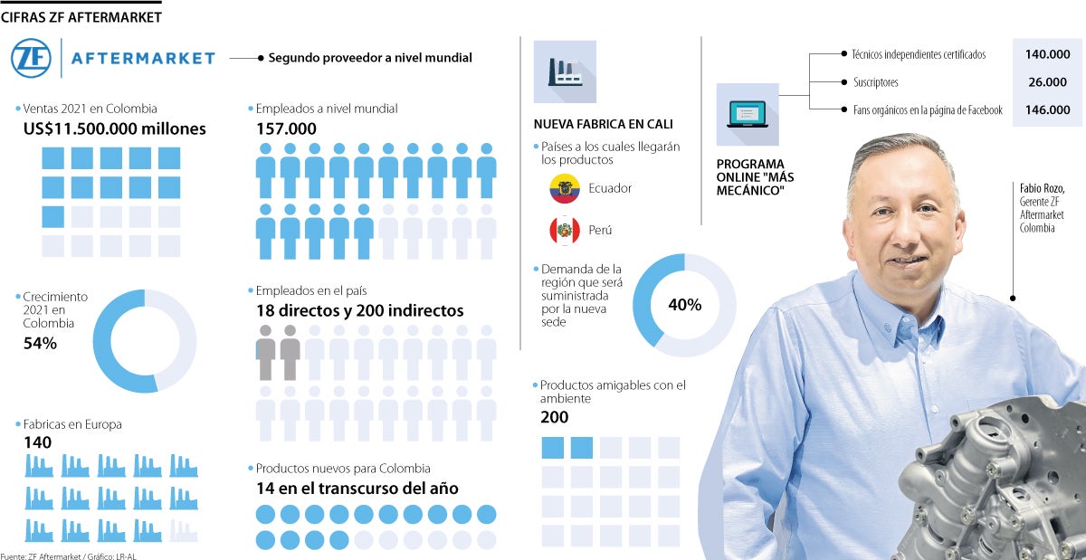 En vísperas de la celebración de sus primeros nueve años de operación en el país, Fabio Rozo, gerente senior de la empresa de autopartes ZF Aftermarket, dialogó con LR sobre los hitos de la marca. Crecieron 54% las ventas el año pasado en el país, impulsados por la alta demanda de reparaciones de vehículos que no pudieron salir a las calles por meses. Habló del primer centro de distribución que abrieron en Cali, para surtir mercados de Ecuador y Perú, y del encarecimiento de insumos como acero y cobre.