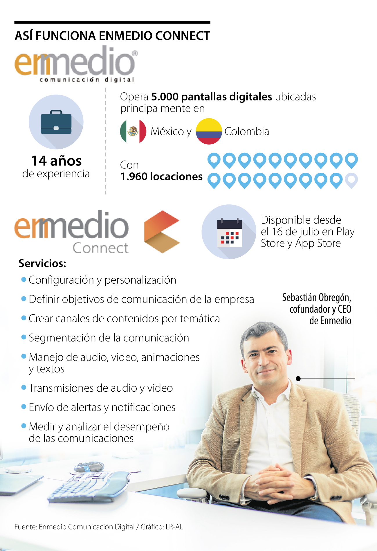 Los cambios de hábitos y la mayor digitalización derivados de la pandemia han hecho que las empresas tengan que adaptar sus procesos. Enmedio Comunicación Digital, compañía colombiana dedicada a implementar canales de comunicación corporativa por medio de pantallas digitales, le apostó a un nuevo proyecto, Enmedio Connect, una app que según Sebastián Obregón, cofundador y CEO de Enmedio, permitirá a las compañías conectarse con sus empleados en cualquier momento y lugar desde el celular.
