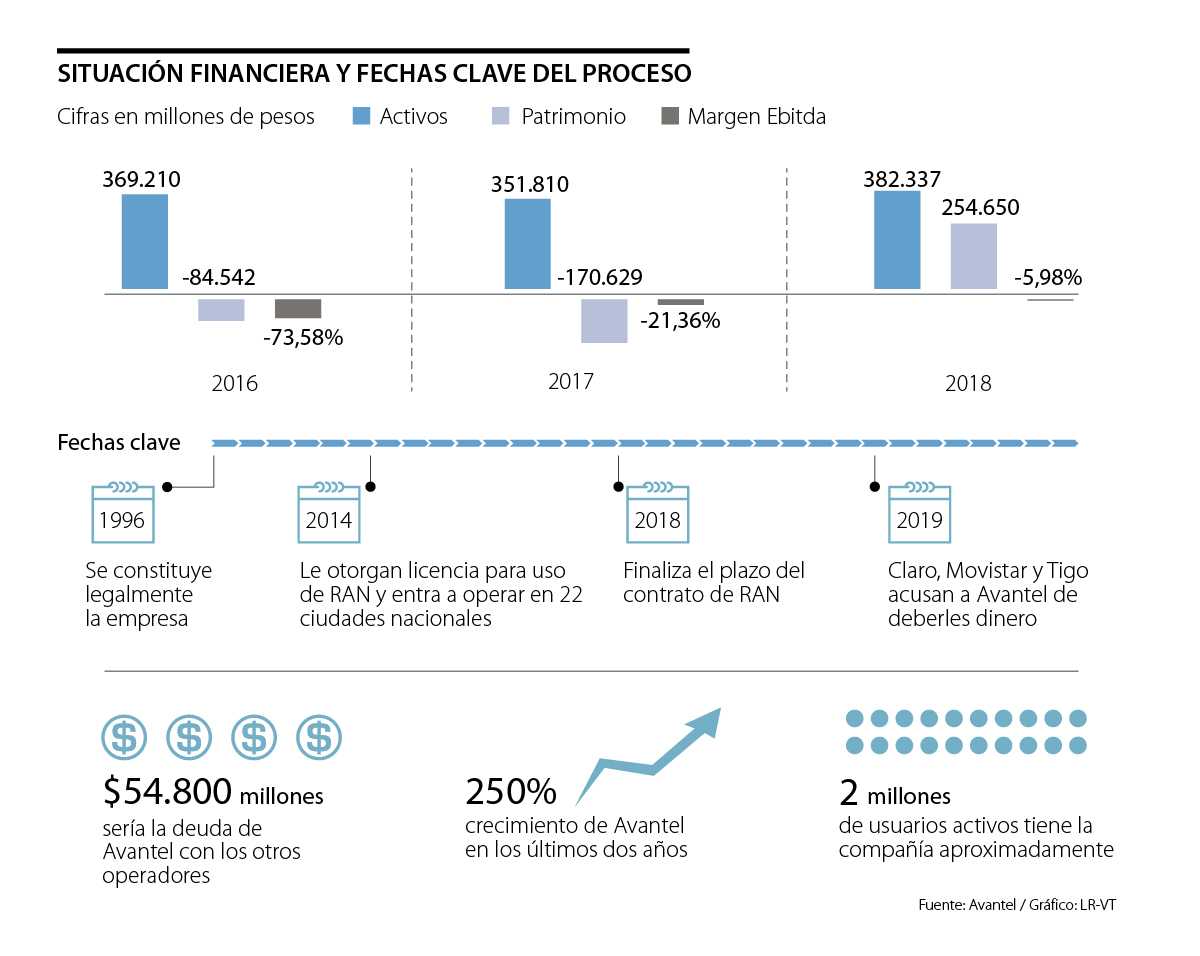 No obstante, dicho desempeño se ha visto opacado por una disputa en la que ha estado inmersa con los operadores: Claro, Movistar y Tigo. La razón es que estas compañías acusan a Avantel de deberles más de $54.800 millones por el uso del Roaming Automático Nacional (RAN), cuya tarifa habría cambiado al término de 2018.