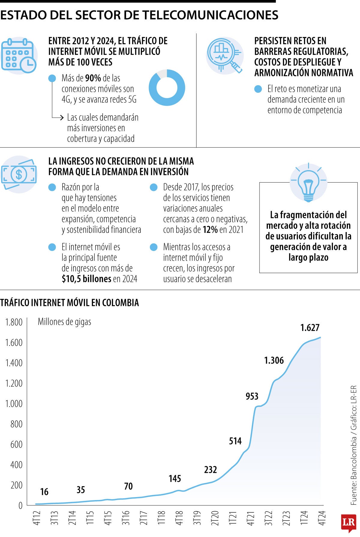 En Colombia, el Internet móvil se consolidó como la principal fuente de ingresos del sector, y esta representó $10,5 billones en 2024, pero el Internet fijo mantiene una expansión sostenida.