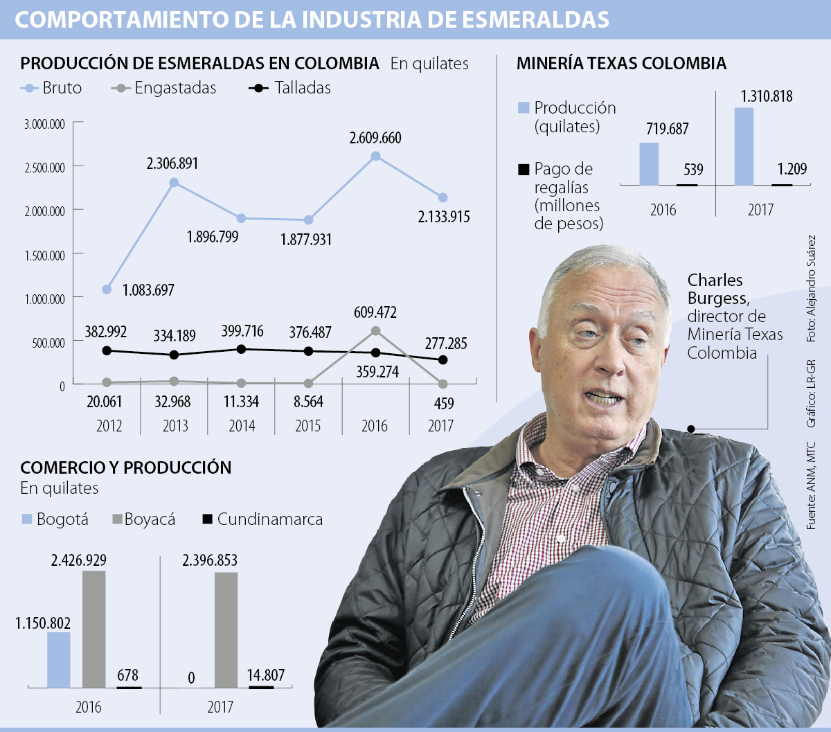 La esmeralda es un producto de lujo y por eso es mejor no hablar de cuánto va a haber. Aunque la esmeralda colombiana es por mucho la mejor del mundo, tenemos competencia de Zambia y de Brasil, y es clave la cantidad que entra al mercado. Por política de la empresa no hablamos de cantidades específicas, pero podemos decir que nuestra producción será mayor a la de 2017 y que somos los productores más grandes del país.