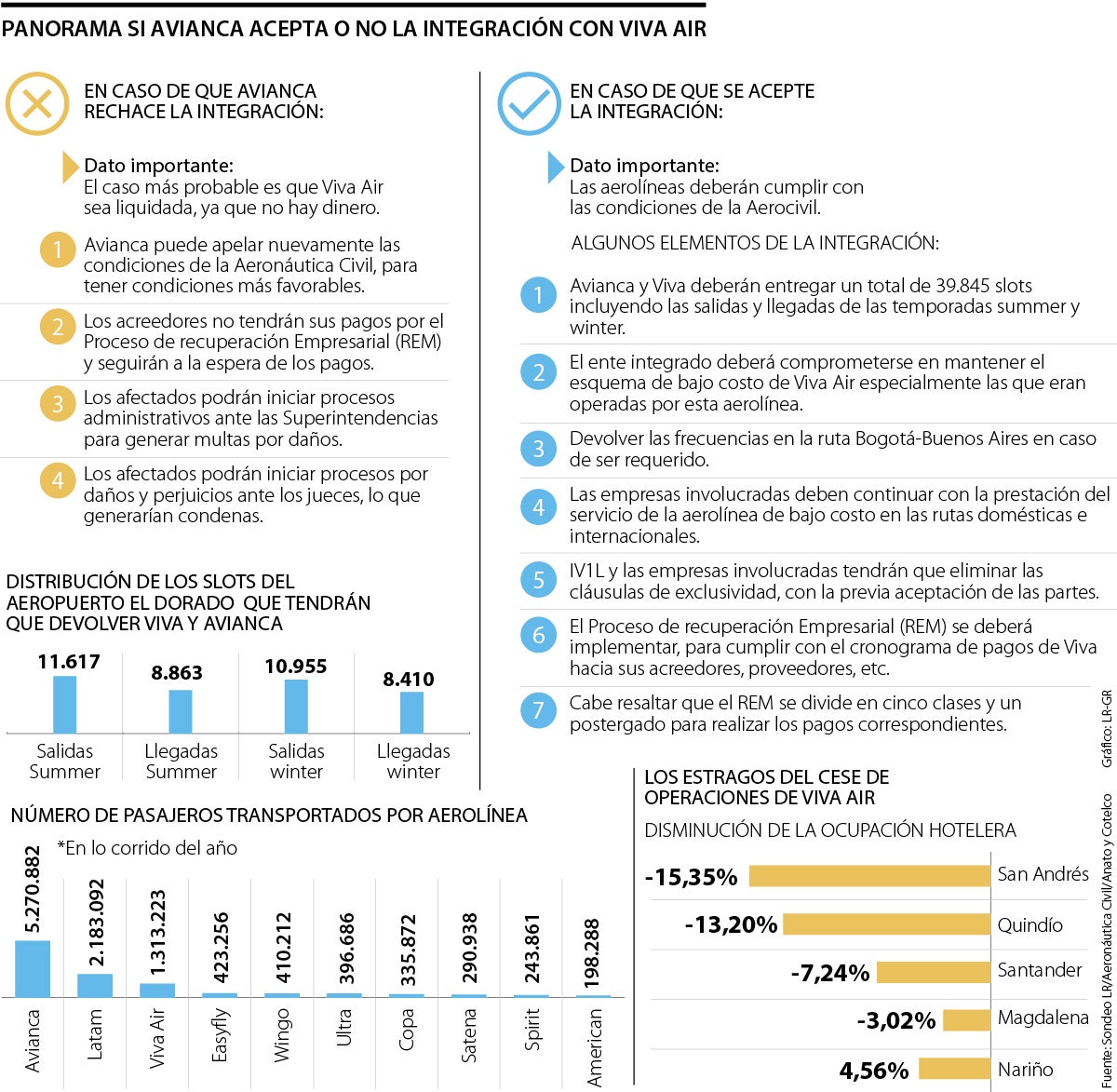 Además de que Viva no podrá cumplir con el Proceso de Recuperación Empresarial (REM), que se estableció separado de la integración, el cual recalcaba que la empresa tendrá cinco clases y un postergado para realizar los pagos a los acreedores y a las personas afectadas por el cese de operaciones, Juan Felipe Reyes, abogado aeronáutico de Parra Rodríguez Abogados, recalcó que “Viva Air no sobrevive o resucita más bien si Avianca no acepta la integración”.
