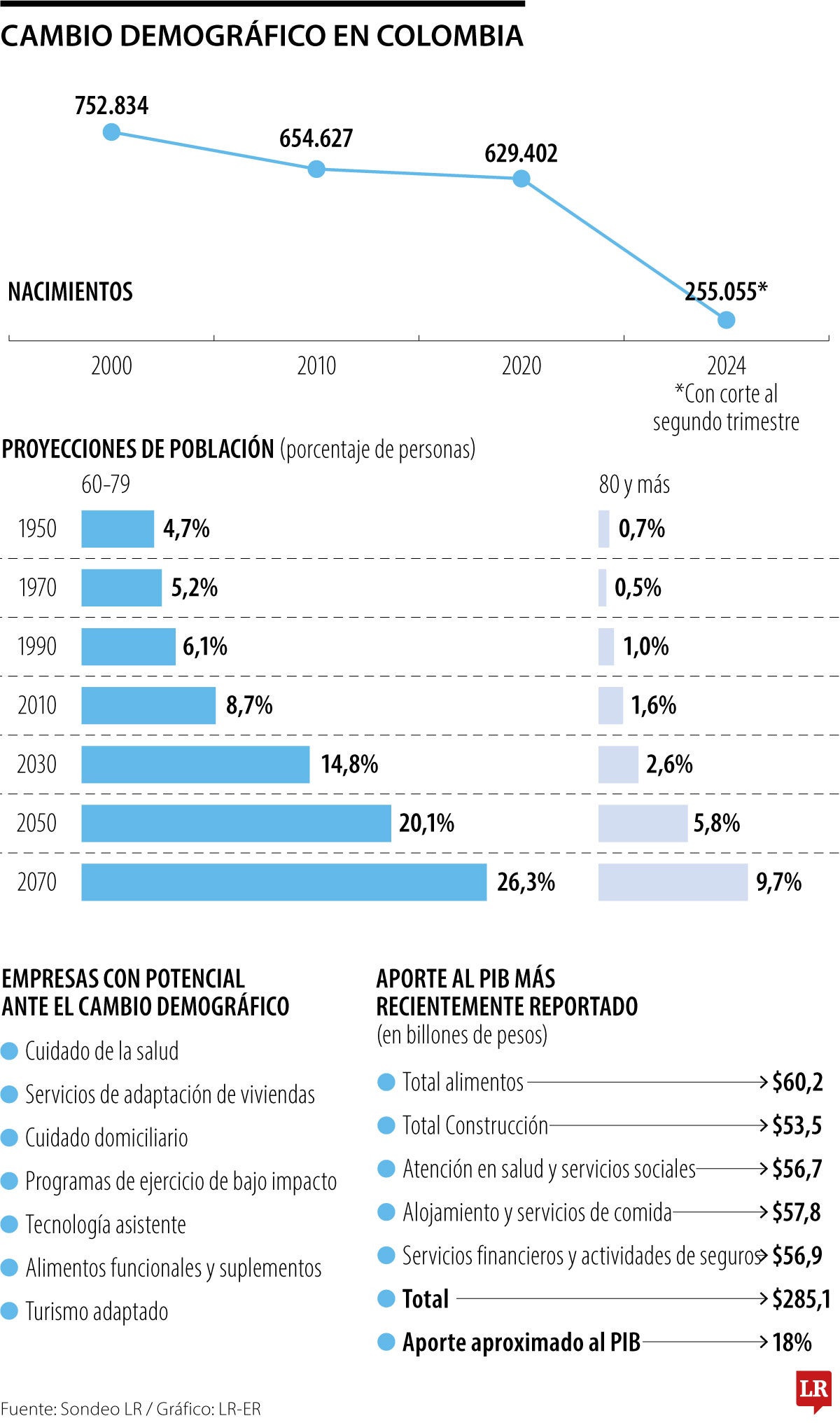 En ese futuro escenario, las apuestas se inclinan por la industria de la salud, alimentos sanos, viviendas adaptadas, turismo especializado, cuidados domiciliarios y tecnología asistente, renglones que en el presente mueven un poco más de $285 billones y aportan cerca de 18% al Producto Interno Bruto.