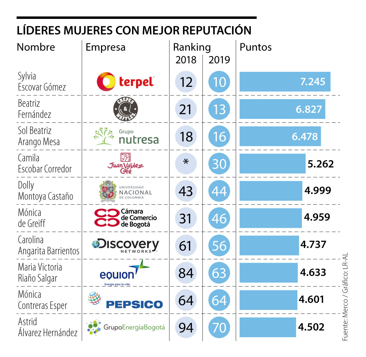Este año, en la medición de 2019 del Monitor Empresarial de Reputación Corporativa, Merco, se vio la participación de 10 mujeres en el ranking de los líderes empresariales con mejor reputación en Colombia.
