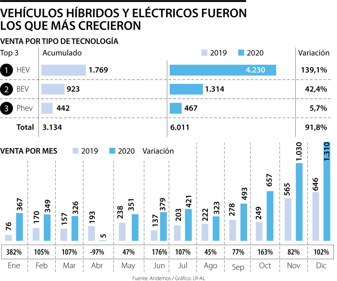 El comercio del segmento se duplicó en 2020, tras alcanzar 6.011 unidades. la importancia del medio ambiente, así como los beneficios tributarios impulsaron el segmento