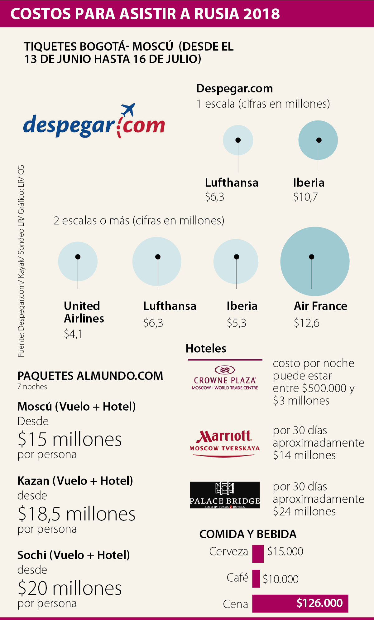 LR hizo un presupuesto para que pueda iniciar las reservas desde ahora, en el que se incluyeron tiquetes, alojamiento, costo de las boletas y el consumo diario que pueden alcanzar un valor total aproximado de $126 millones.