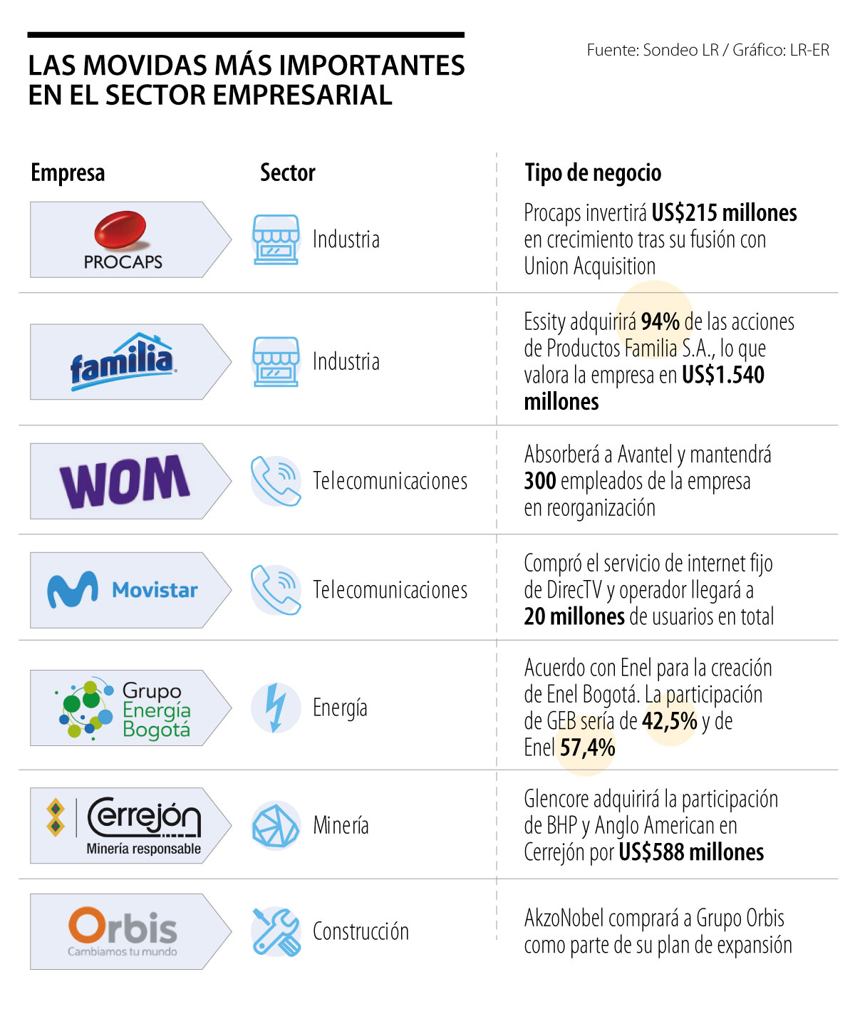 A pesar de que muchas personas esperaban que en 2021 la reactivación económica diera un gran salto, esto se vio marcado por nuevas restricciones y bloqueos en el paro nacional; sin embargo, en solo seis meses se han hecho siete movidas importantes con empresas protagonistas como Procaps, Familia, WOM, Movistar, GEB, entre otras.