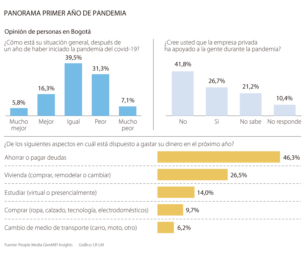 Partiendo de esto, la encuesta también mostró que al hablar de gastos para el próximo año, las personas tienen dos prioridades; 46,3% precisó que usaría el dinero para ahorrar o pagar sus deudas y 26,5% invertir en sus viviendas ya sea para comprar, remodelar o cambiar. Para Hoyos esto responde a que la vida de las personas se trasladó a sus hogares.