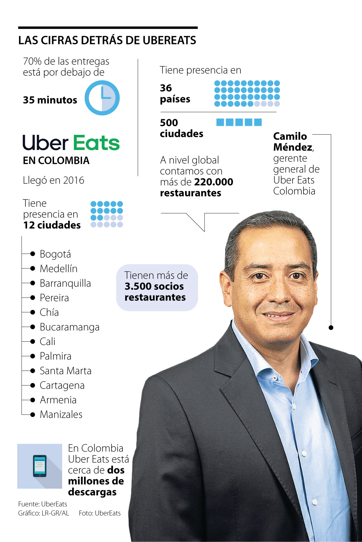 En el marco de la salida de Uber de Colombia, Camilo Méndez, gerente general de Uber Eats, explicó que esa situación no afecta el negocio de la aplicación que maneja, y, por el contrario, esperan un crecimento de doble dígito para este año.