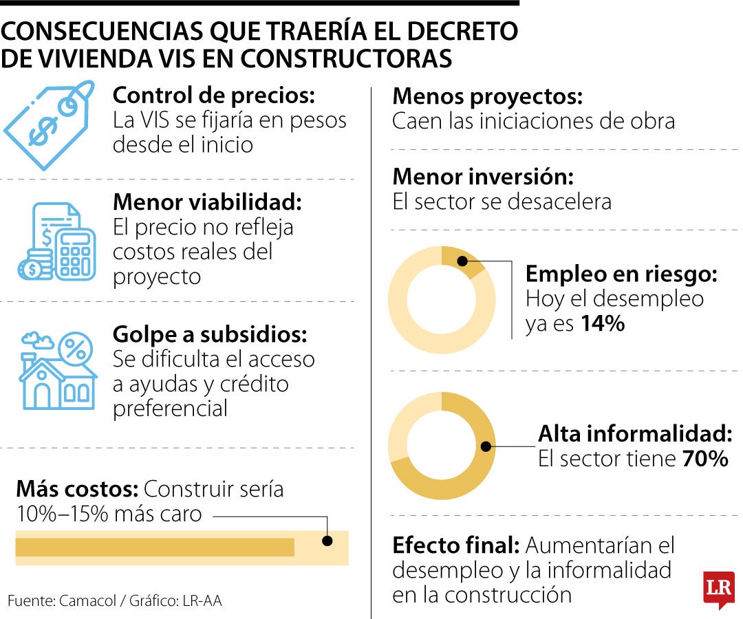 El borrador de decreto genera incertidumbre para las empresas constructoras, ya que altera las reglas de fijación de precios que han permitido la viabilidad financiera de los proyectos de VIS durante años. Para Camacol, imponer precios desde el inicio afecta la capacidad de las compañías de planear sus inversiones y evaluar la rentabilidad de los proyectos.