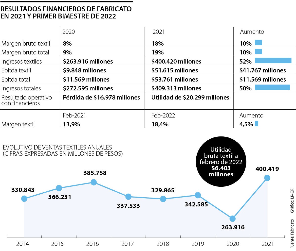 La empresa dedicada a la fabricación y comercialización de textiles Fabricato anunció que sus resultados financieros correspondientes a 2021 registraron alzas históricas, que marcan el rumbo de una sólida recuperación frente al ejercicio de 2020, en que había sufrido pérdidas por cuenta de la pandemia.