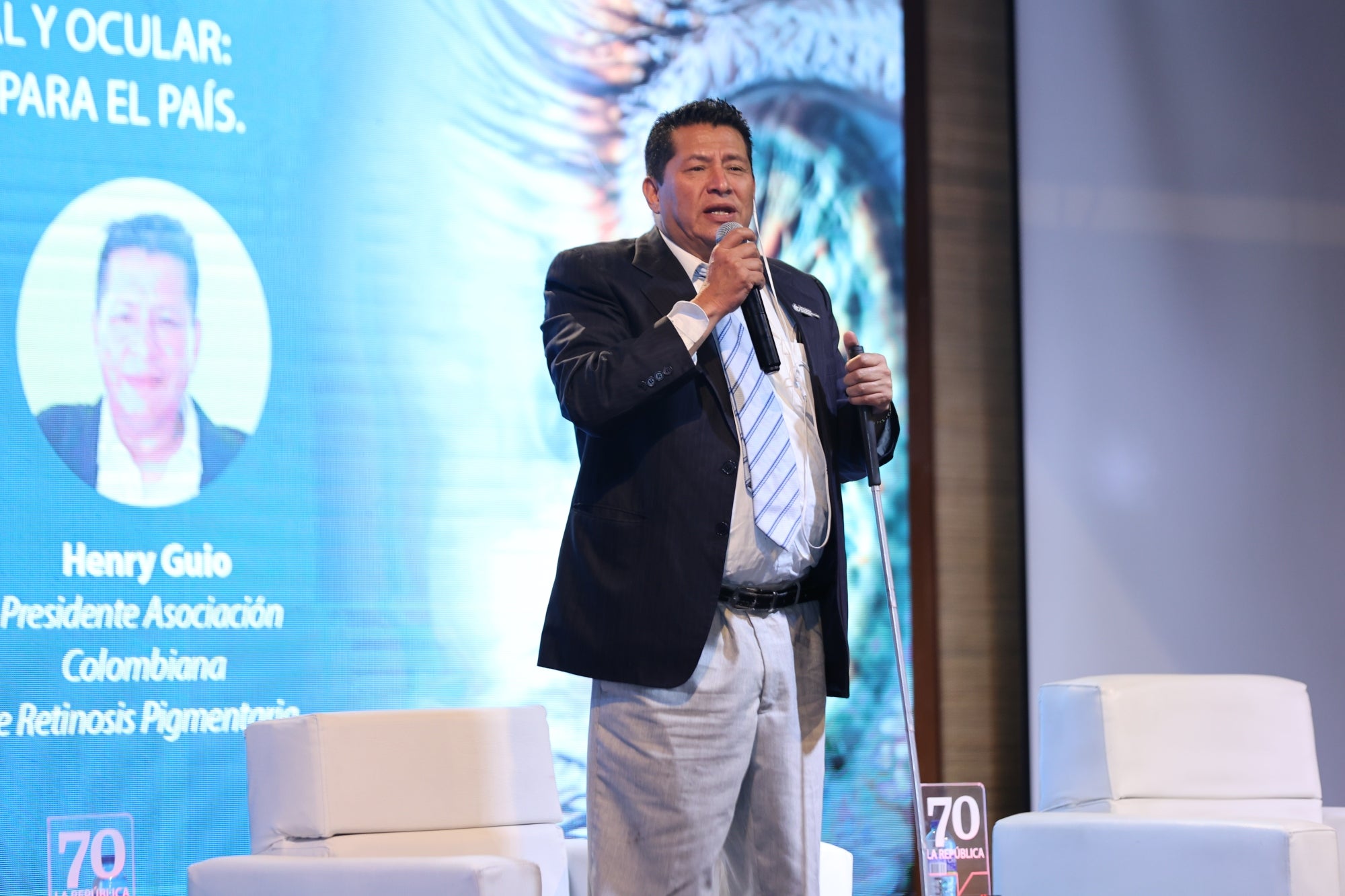 Henry Guio, presidente de la Asociación Colombiana de Retinosis Pigmentaria, no solo es un paciente, sino también un líder que trabaja para garantizar el servicio de atención, diagnóstico y tratamiento a tiempo para quienes registran una afectación visual.“En esta tarea de salud visual y ocular estamos comprometidos los que ven y los que no podemos ver o vemos muy poco. Hay un avance y un desarrollo para destacar en salud visual y ocular y es el tecnológico”, dijo Guio.