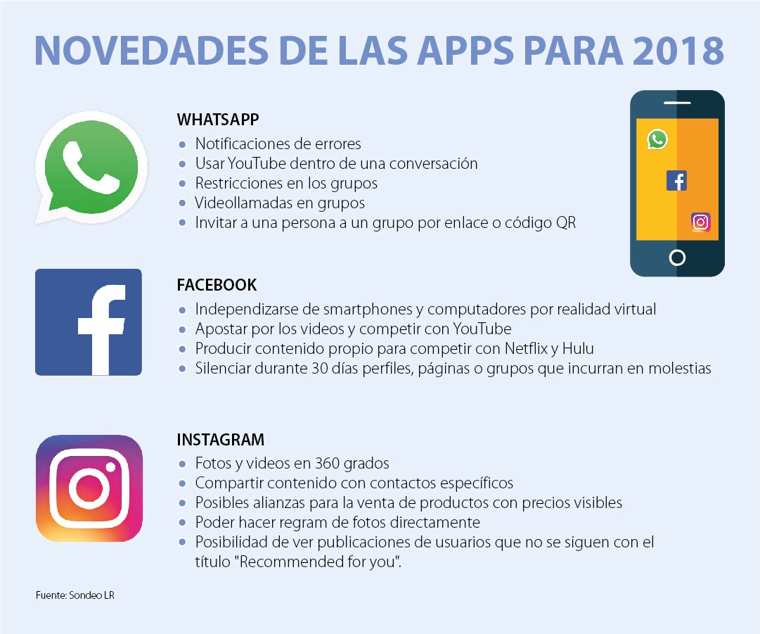 Este nuevo año inició con uno de los eventos tecnológicos más importantes que es el CES realizado en Las Vegas, en donde las grandes marcas tecnológicas muestran sus primeros ases bajo la manga para tener un 2018 de ganancias. Pero no solo las marcas presentes en este evento tienen en mente grandes cambios, pues también aplicaciones como WhatsApp, Facebook e Instagram prometen un año con nuevas funciones y cambios dentro de sus plataformas.