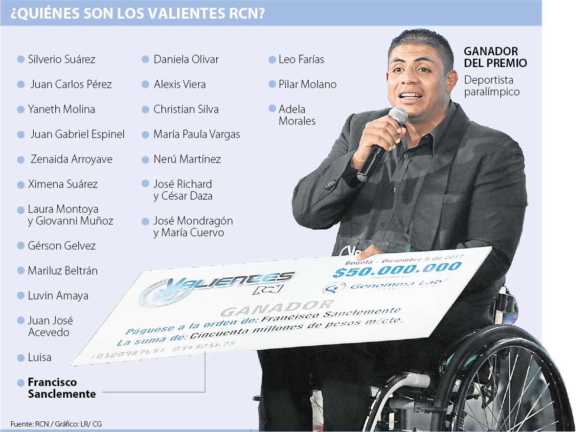 Entre 23 historias de vida presentadas en Valientes RCN, la del deportista paralímpico Francisco Sanclemente fue la que más impactó a las 62.881 personas que votaron para darle el título del “Valiente 2017” y un premio de $50 millones.