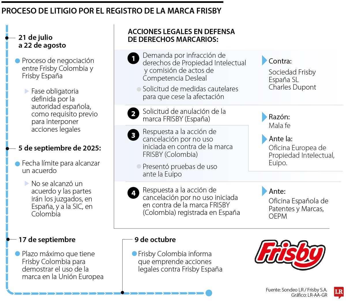 Pero si por el contrario, la Euipo niega la nulidad y considera legítimo el registro de Frisby España, quedaría como dueña legal de la marca en Europa y Frisby Colombia tendría que buscar otro nombre si quisiera entrar a ese mercado.