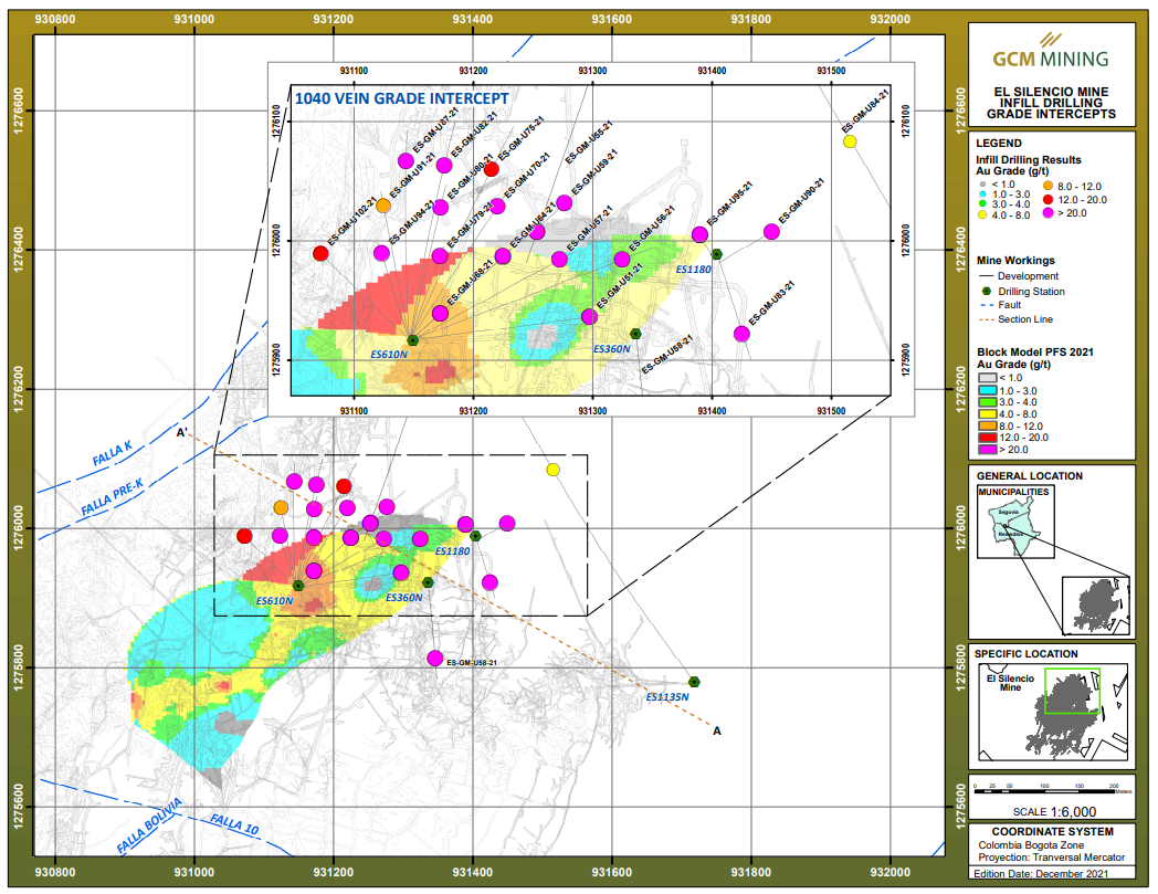 GCM Mining, antes Gran Colombia Gold, anunció la intercepción de múltiples secciones de alto tenor por los 79 hoyos de perforación de diamante más recientes, que alcanzan un total de 14.798 metros, de la campaña de perforación de relleno subterránea que el Departamento de Geología de Minas de la Compañía está llevando a cabo en la Mina El Silencio en sus Operaciones en Segovia.