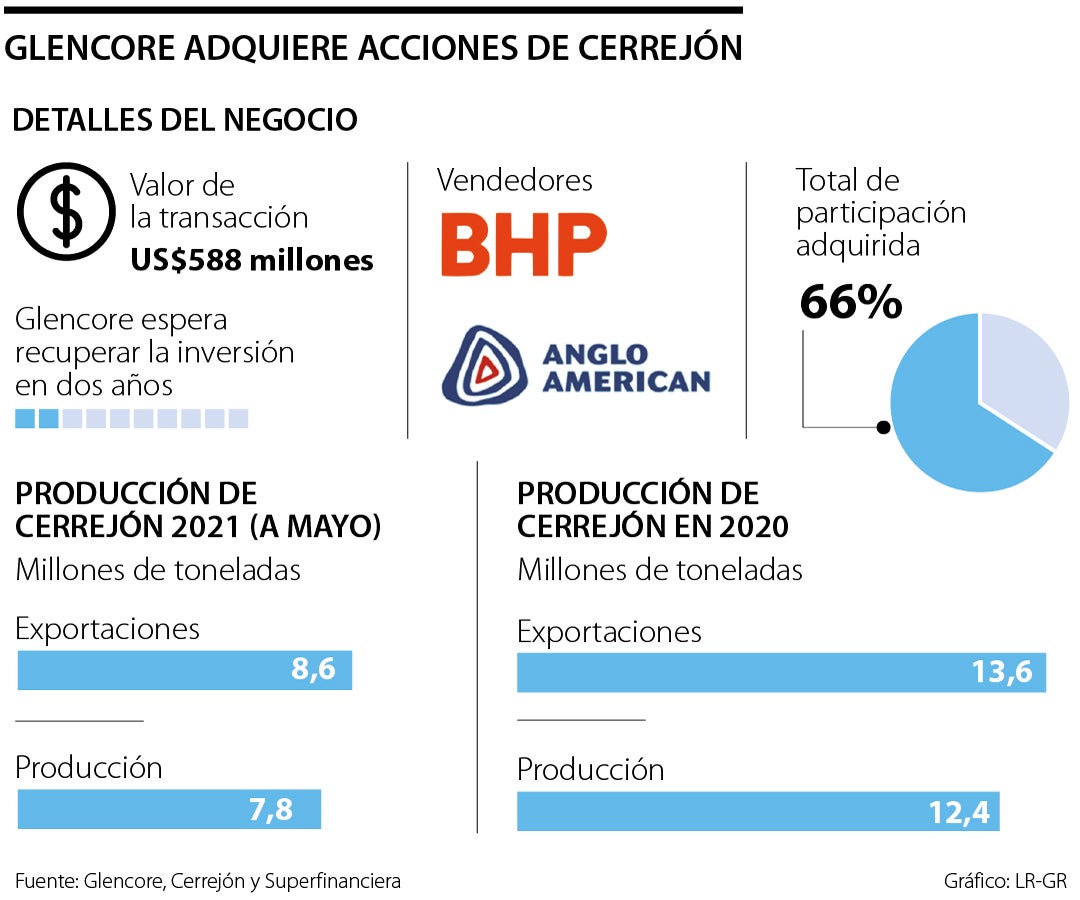 La transacción es por 66% de la participación en la mina que tenía ambas compañías. De esta forma, Glencore es el único propietario