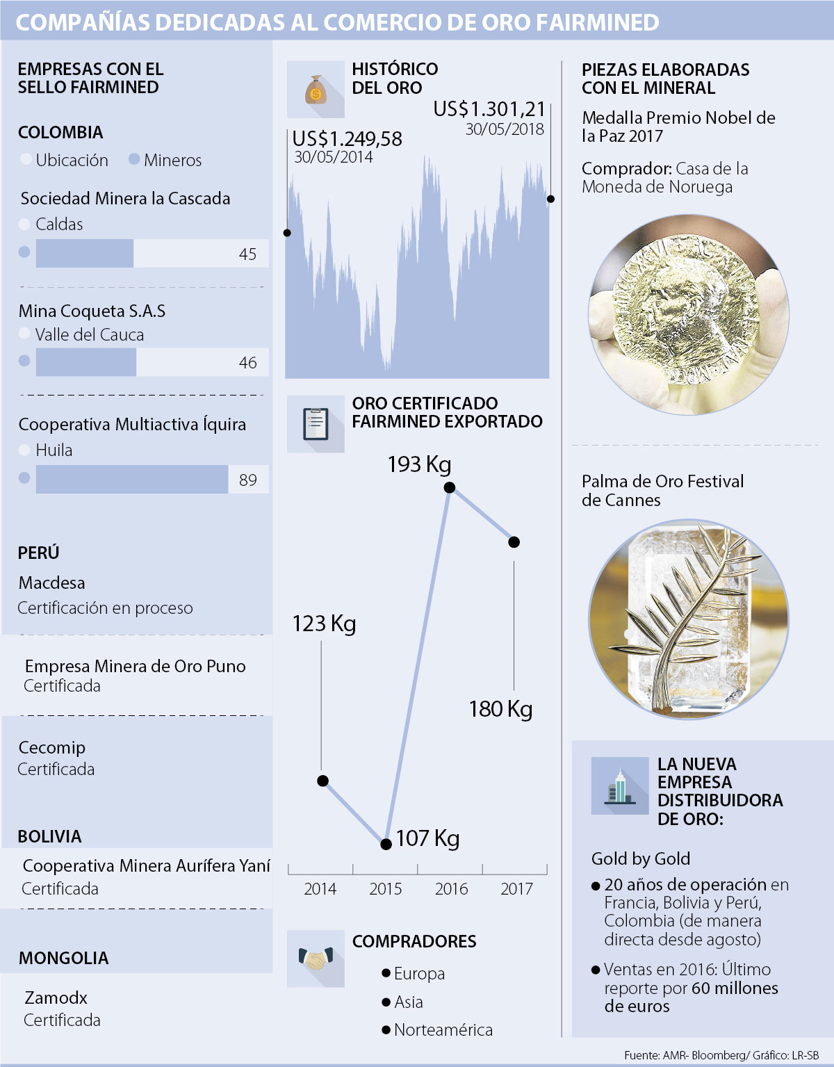 Son pocas las maneras en las que un exportador entrega con claridad al comprador final esos parámetros. Esta es la razón por la que desde 2014, se creó en Medellín la Alianza por la Minería Responsable (AMR), organización que certifica con el sello Fairmined a empresas que demuestren que la minería es sostenible.