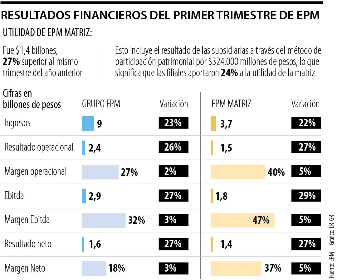 Ebitda del Grupo EPM fue por $2,9 billones, el segmento Distribución de Energía aportó 43 % con $1,3 billones. Su crecimiento de 16 % se debió a más cantidad de energía vendida a un mayor costo unitario e incremento de ingresos por la financiación de servicios públicos. También se destaca la filial Eegsa, en Guatemala, con incremento de clientes y más unidades vendidas a un mayor precio.