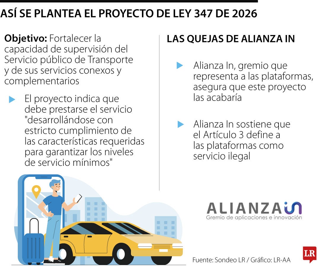 El Proyecto de Ley 347 de 2026, que fue retirado ayer temporalmente para ajustar artículos, tenía como propósito “fortalecer la capacidad de supervisión del Servicio público de Transporte”. Sin embargo, entre los 118 artículos que incluía el texto, a juicio de Alianza In (gremio que representa a las apps Uber, DiDi, Cabify e Indrive), había 10 que le jugaban en contra a todo su ecosistema, dejando con el estatus de “ilegales” y proponiendo multas de hasta $4,7 millones para quienes tomaran el servicio.