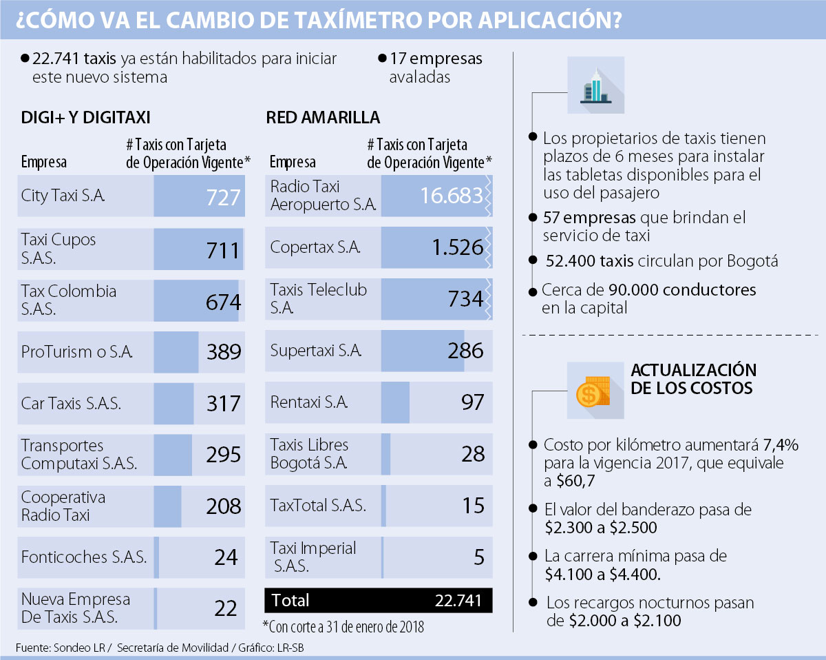 Pese a que hasta el momento el gremio de taxistas, los conductores y las empresas de taxímetro han rechazado la decisión, varias compañías como Teleclub, Tax Express y Taxis Libres, entre otras, ya ajustan su flota para iniciar la transformación digital. Según Estefanía Hernández, gerente general de Taxis Libres, “se han capacitado a más de 7.000 conductores para que aprendan a trabajar con el nuevo sistema”.