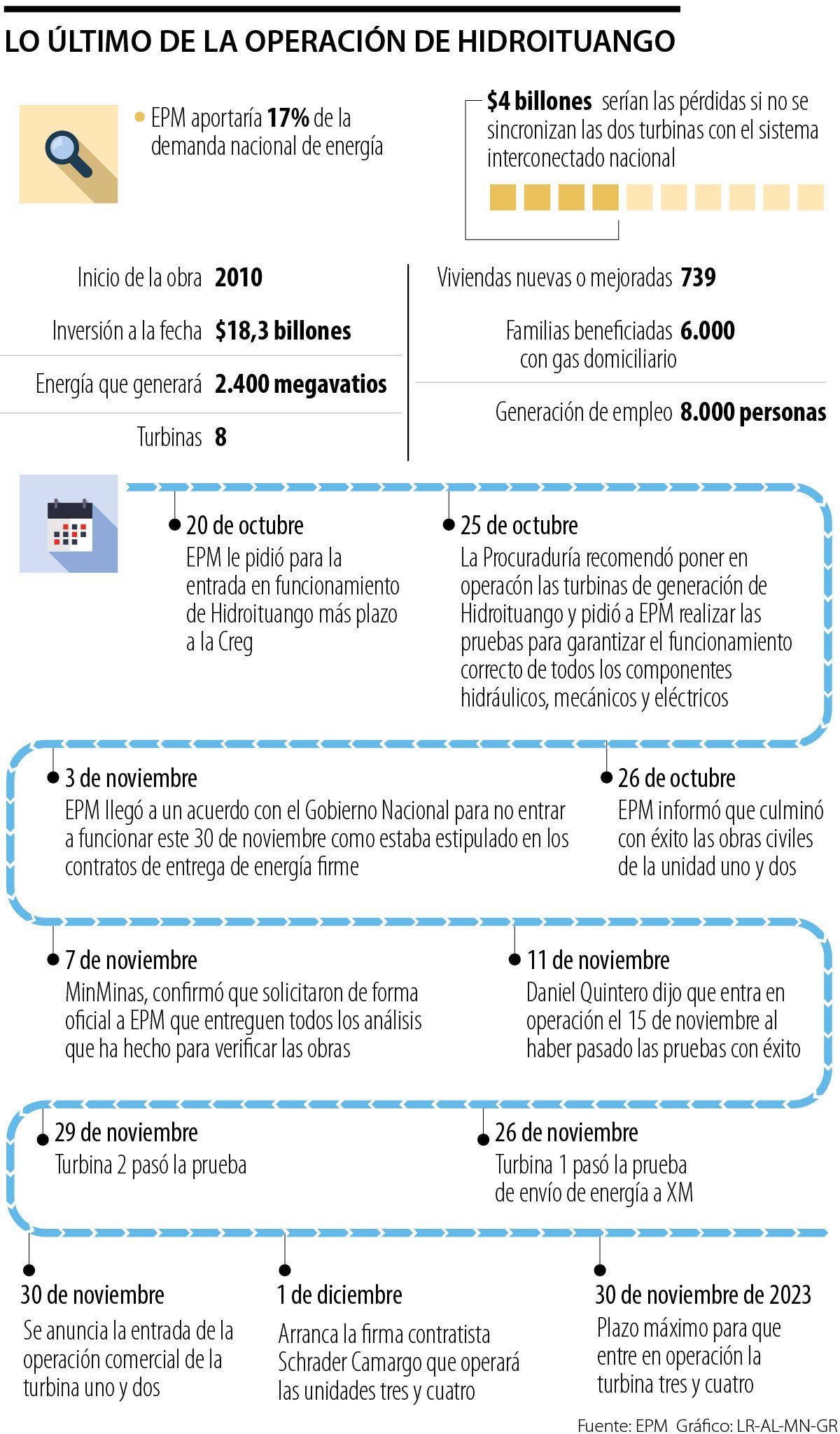 EPM anunció que las unidades uno y dos ya entraron en operación comercial, por lo que no le aplicará sanción de la Creg. Faltan por terminar seis más en la hidroeléctrica