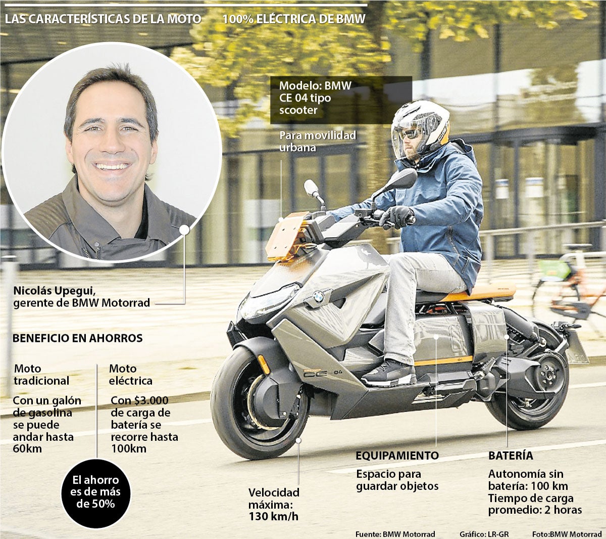 Tal es el caso de BMW Motorrad, uno de los pesos pesados de la industria automotriz global. A través de su importadora oficial en Colombia, Autogermana, anunció su primer modelos de moto 100% eléctrica, la cual saldrá al mercado colombiano en marzo. Nicolás Upegui, gerente de BMW Motorrad, contó a LR los detalles de innovación que pesentará este modelo, su precio y las proyecciones de la marca en el país.