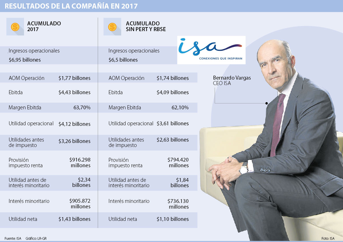 La compañía multilatina ISA presentó sus resultados consolidados en 2017 y en ellos destacó que descontando los impactos del ajuste del valor de la Red Básica Existente (Rbse) en ISA Cteep y de la adhesión al Programa Especial de Regularización Tributaria (Pert), aprobado por el gobierno brasileño, los ingresos se incrementaron 5,5% luego de pasar en 12 meses de $6,2 billones en 2016 a un cierre de $6,5 billones el año pasado. En el reporte global los ingresos totales operacionales sin incluir estas excepciones sumaron $6,95 billones.