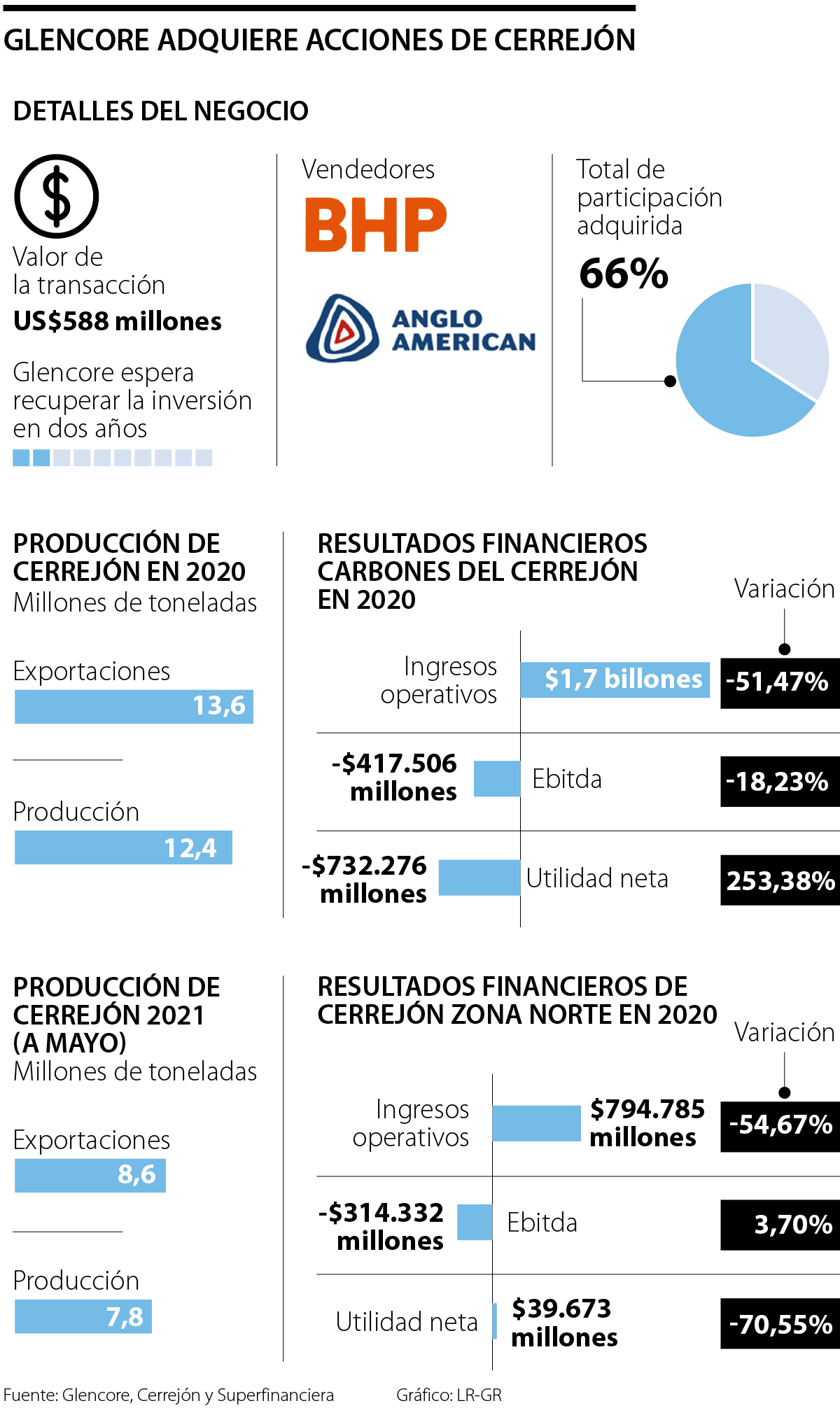 Con el inicio de la semana, Glencore dio la noticia que había adquirido la participación de BHP y Anglo American en Cerrejón. Se trata de 33,3% de las acciones que cada empresa tenía en la mina de carbón térmico ubicada en La Guajira. Es decir, la transacción fue por 66% de la participación.
