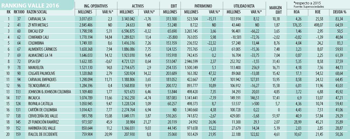 El reporte financiero del territorio azucarero mostró que Carvajal fue la compañía con mejores resultados en ingresos al reportar $3 billones, mientras que fue la Fundición Ramírez Zona Franca la que más creció en este indicador con un aumento de 45,9% y una cifra de $973.578 millones.