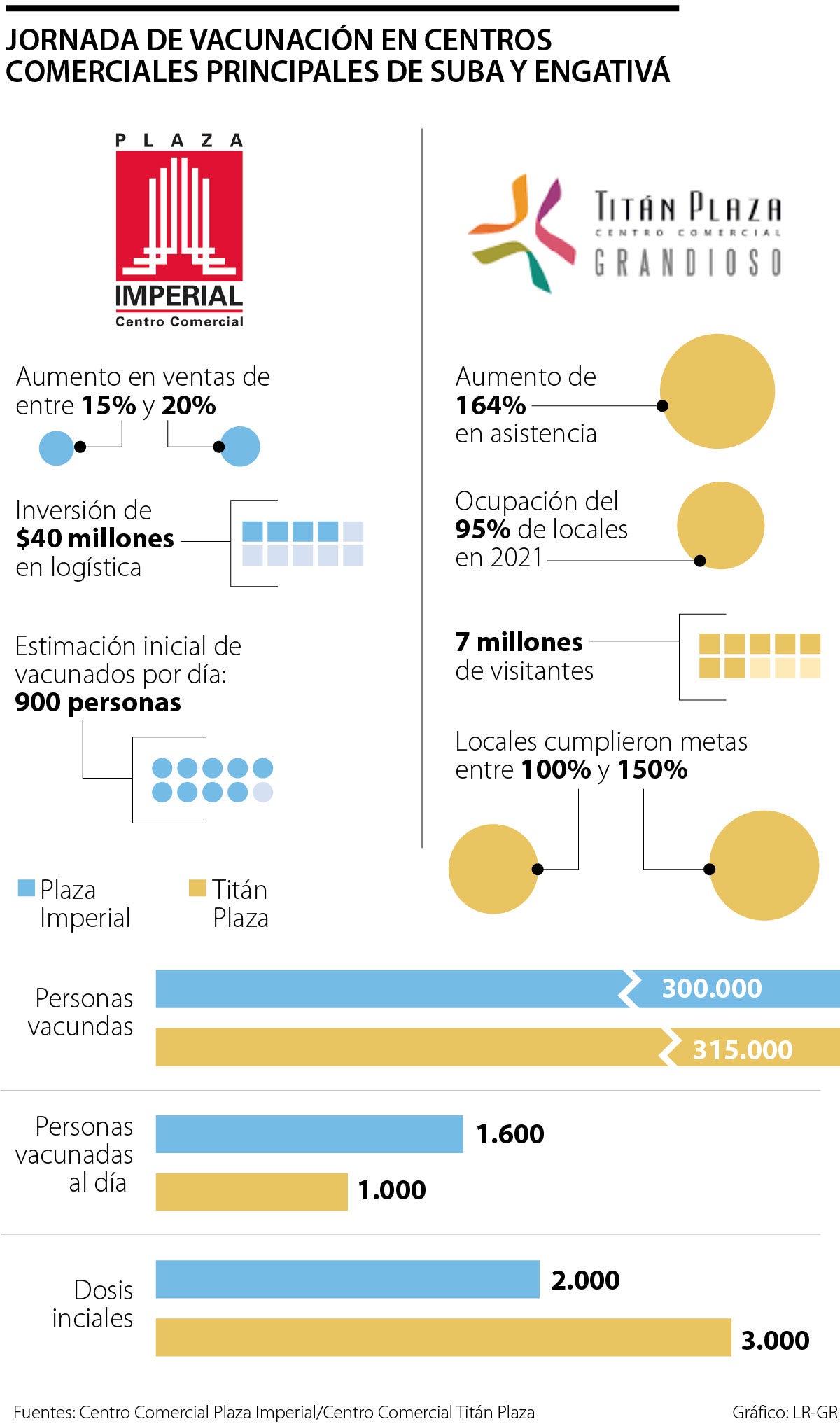 En estas dos localidades, los centros comerciales fueron los puntos de mayor concentración para realizar el proceso de vacunación. Actualmente, Titán Plaza y Plaza Imperial continúan con procesos de reactivación.