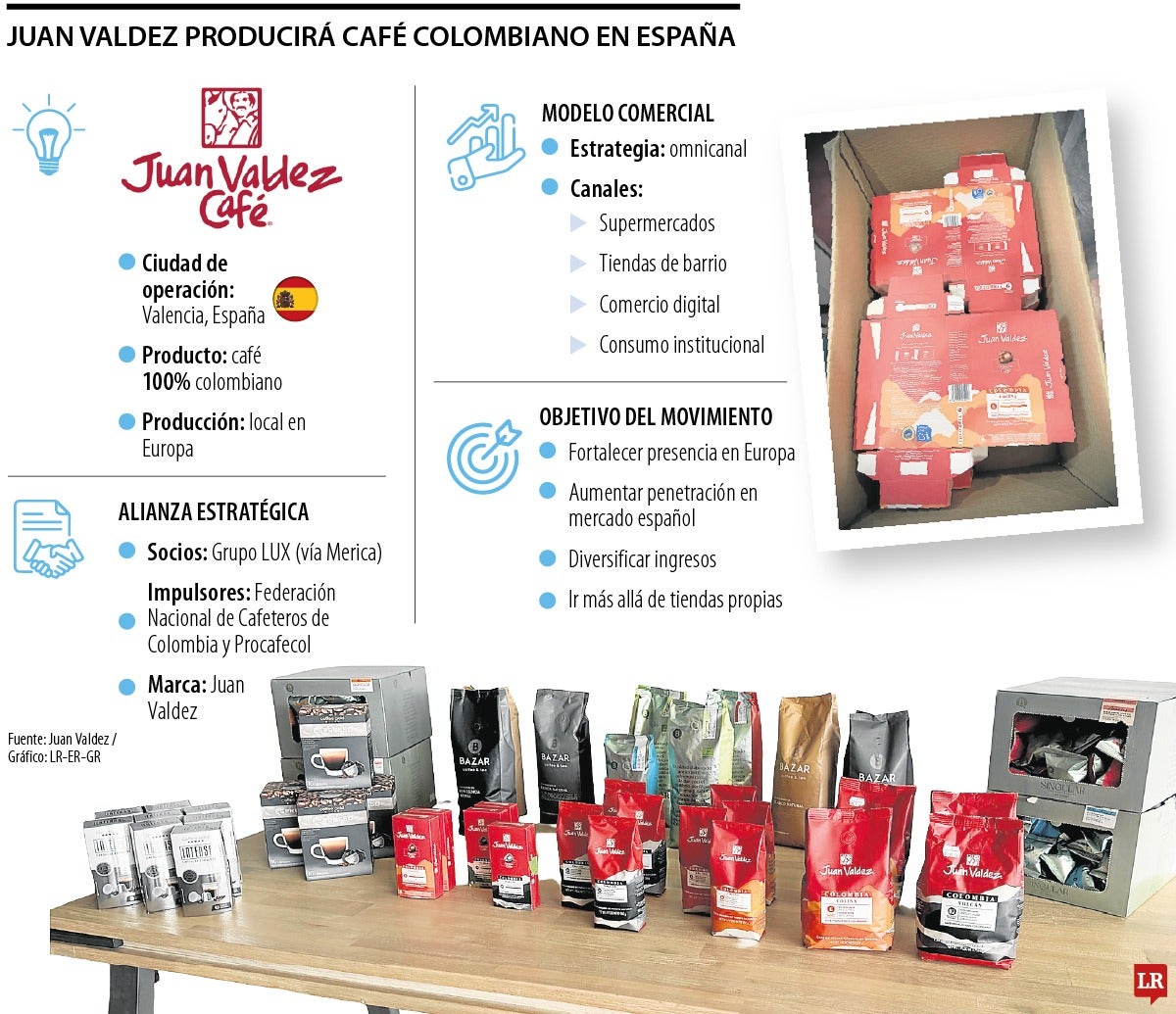 La Federación Nacional de Cafeteros de Colombia y Procafecol anunciaron un nuevo paso en su expansión internacional con la apuesta de Juan Valdez por el mercado español, mediante una alianza con el Grupo LUX, a través de su filial Merica. El anuncio se conoció a través de la cuenta en X de Germán Alberto Bahamón, gerente general del gremio, quien aseguró que “la meta es estar en todos los puntos de consumo”.