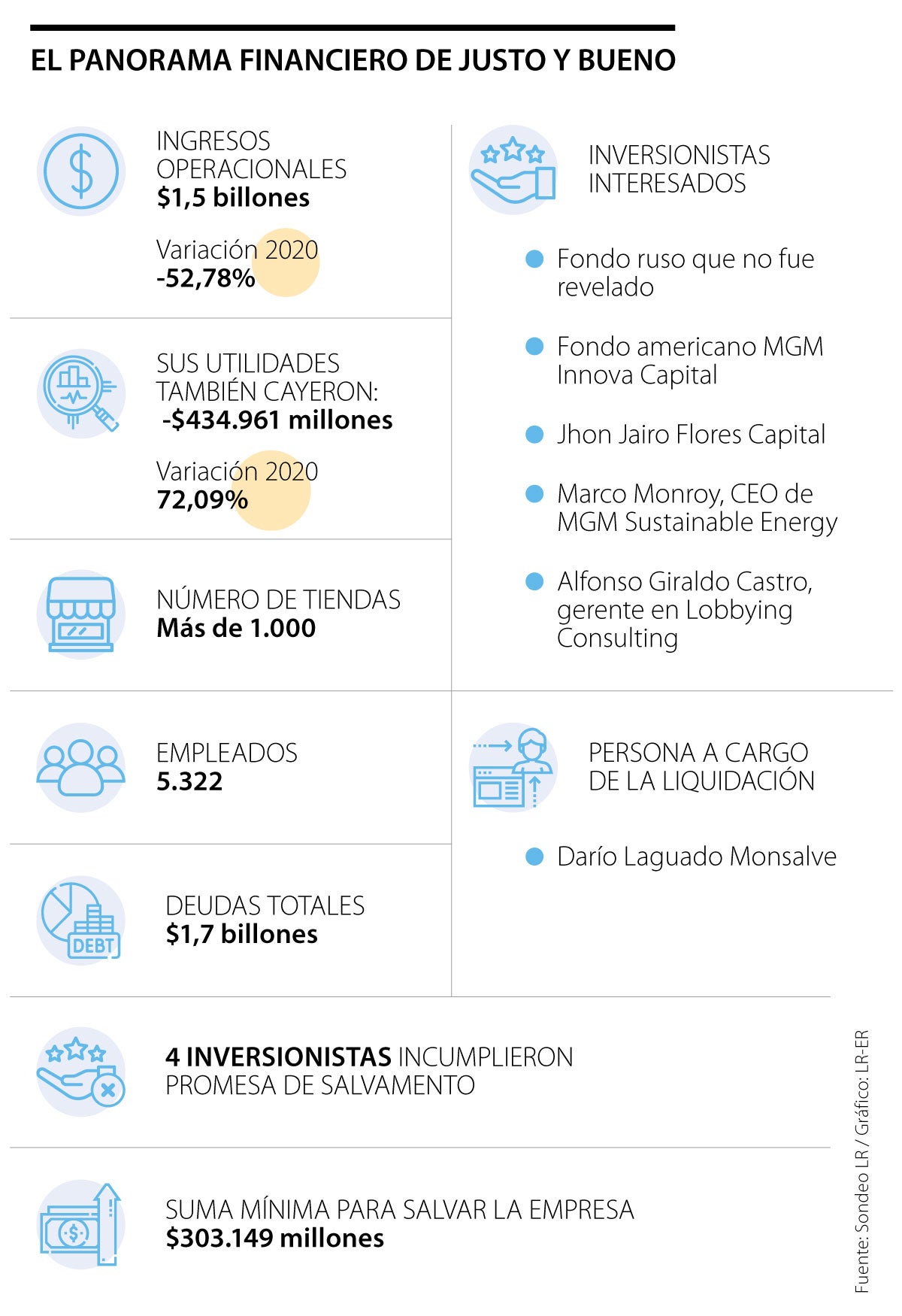 Para salvar la cadena, el liquidar solicitaba la suma mínima de $303.149 millones. Por lo que con esta nueva oferta desierta, serían cuatro los intentos fallidos de inversionistas por salvar a Justo y Bueno, todos por incumplimiento de la promesa de salvamento.