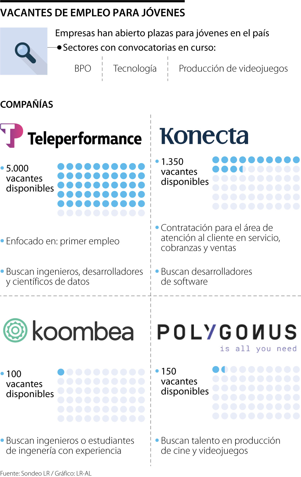 Sin embargo, antes de que se conociera esta iniciativa, algunas compañías de los sectores de las TIC y BPO ya habían abierto sus convocatorias de contratación para jóvenes. Es así como las empresas Teleperformance (TP), Konecta, Koombea y Polygonus buscan sumar cerca 6.600 colombianos de esas edades a su fuerza laboral en los próximos meses.