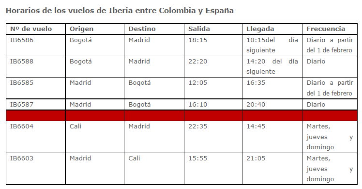 Además, a partir de diciembre, Iberia recuperará su ruta directa Cali-Madrid, con tres frecuencias semanales, operadas con aviones Airbus A330/200.