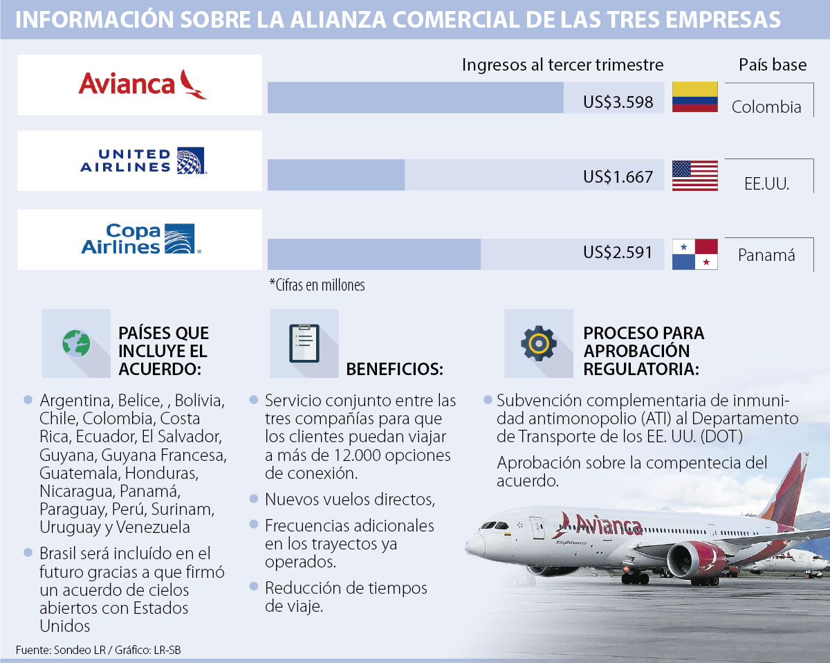 Después de más de un año de negociaciones, Avianca Holdings, United Airlines y Copa Airlines llegaron a un acuerdo comercial para beneficiar a sus pasajeros que viajan entre Estados Unidos y 19 países más en Centroamérica y Suramérica. De acuerdo con Avianca, este pacto se dio como consecuencia de la tendencia global de cooperación que hay en la industria aérea.