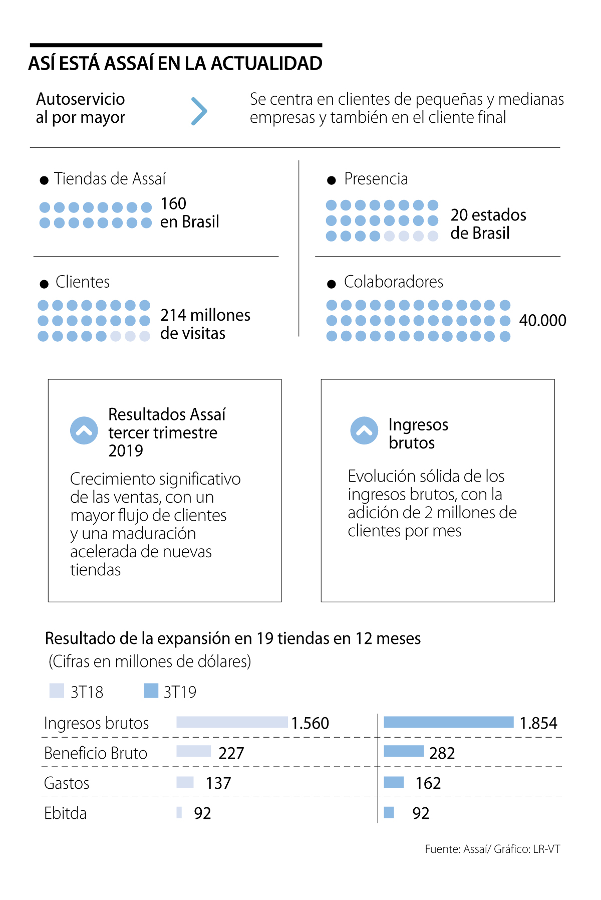 La cadena mayorista Assaí empezó a escribir su historia desde 1974 en São Paulo, Brasil. Desde ese momento hasta hoy, ha logrado consolidar su presencia en ese mercado con 160 tiendas que están ubicadas en 20 estados y que atienden cada año a 214 millones de clientes.