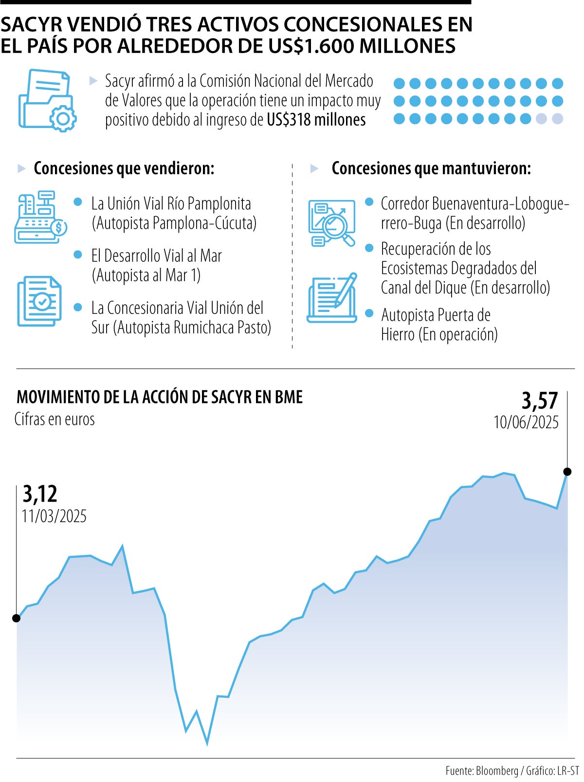 Sacyr, multinacional española que opera en el sector de infraestructura y servicios, vendió tres activos concesionales en Colombia por alrededor de US$1.600 millones.