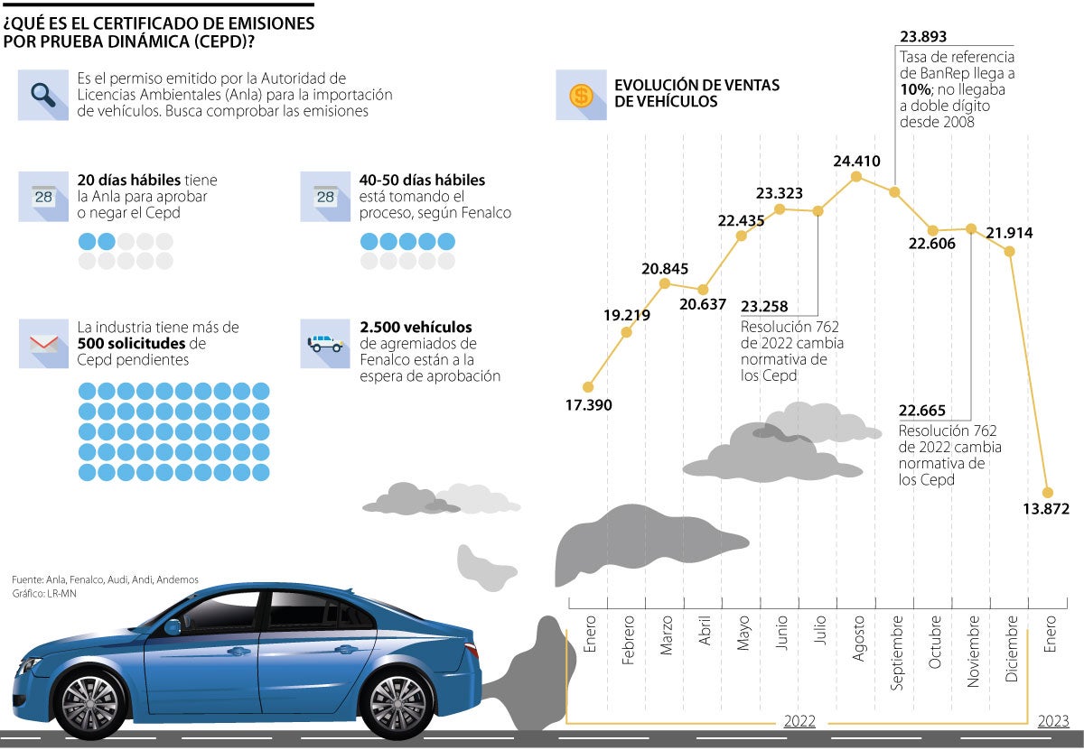 La larga espera para recibir un carro nuevo importado es, desde hace meses una de las principales preocupaciones del sector automotor. Los fabricantes que buscan traer vehículos de origen extranjero deben obtener un permiso llamado Certificado de Emisiones por Prueba Dinámica y Visto Bueno por Protocolo de Montreal (Cepd). Este documento, emitido por la Autoridad Nacional de Licencias Ambientales (Anla), busca comprobar que las emisiones generadas por los vehículos están de acuerdo a las normas nacionales.