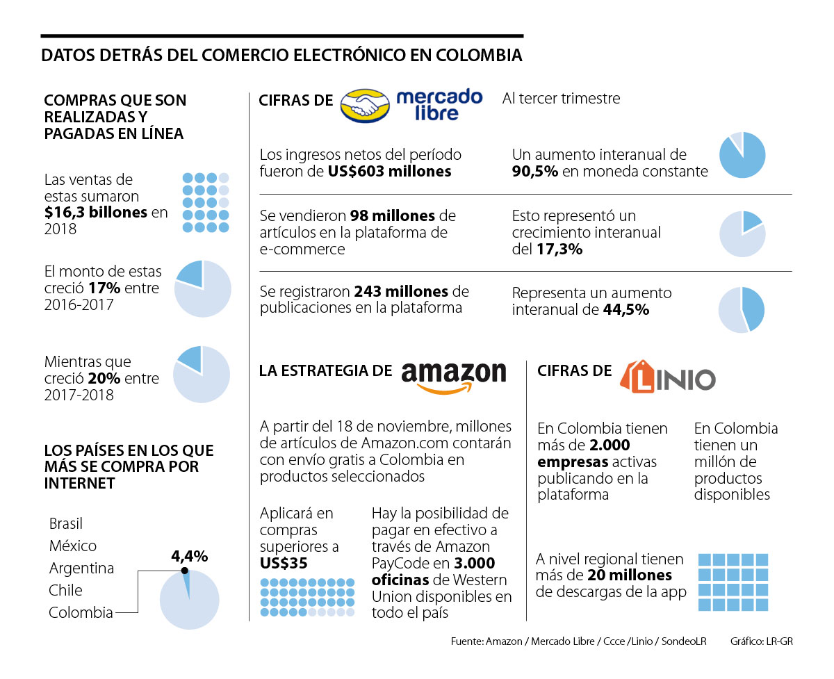 No hay que perder de vista que este anuncio por parte de Amazon llega en un momento en que jugadores como Mercado Libre y Linio continúan haciendo apuestas importantes en el país. Por ejemplo, “hace seis meses Mercado Pago presentó su herramienta Código QR en Colombia”, recordó Juan Camilo Pachón, gerente de marketplace de Mercado Libre Colombia, quien agregó que durante el tercer trimestre se vendieron 98 millones de artículos en la plataforma de e-commerce.