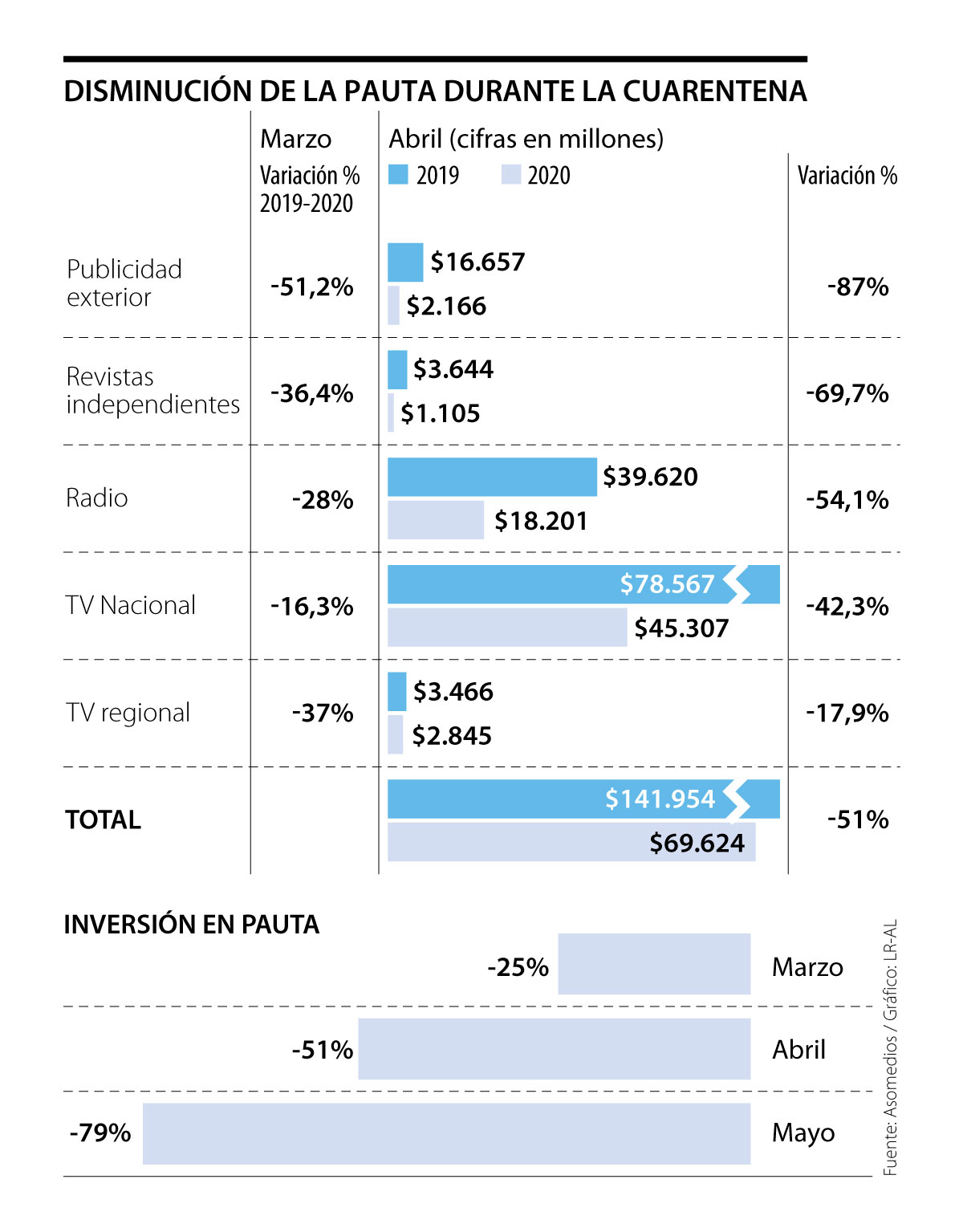Las cifras que entrega Asomedios demuestran que el dato se contrajo 25% durante marzo, frente al mismo mes del año anterior. en abril, la caída fue de 52%