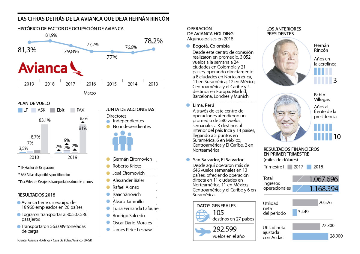El miércoles se conoció que después de tres años al frente de Avianca Holdings, Hernán Rincón Lema se retira de la compañía a partir del 30 de abril de 2019. Esta movida deja a los accionistas a la espera de quién será el nuevo CEO de la empresa, quien continuará con la redefinición de la estrategia corporativa, la cual ya no estará basada en un modelo de crecimiento y expansión, sino que se enfocará en rentabilidad y eficiencia operacional.