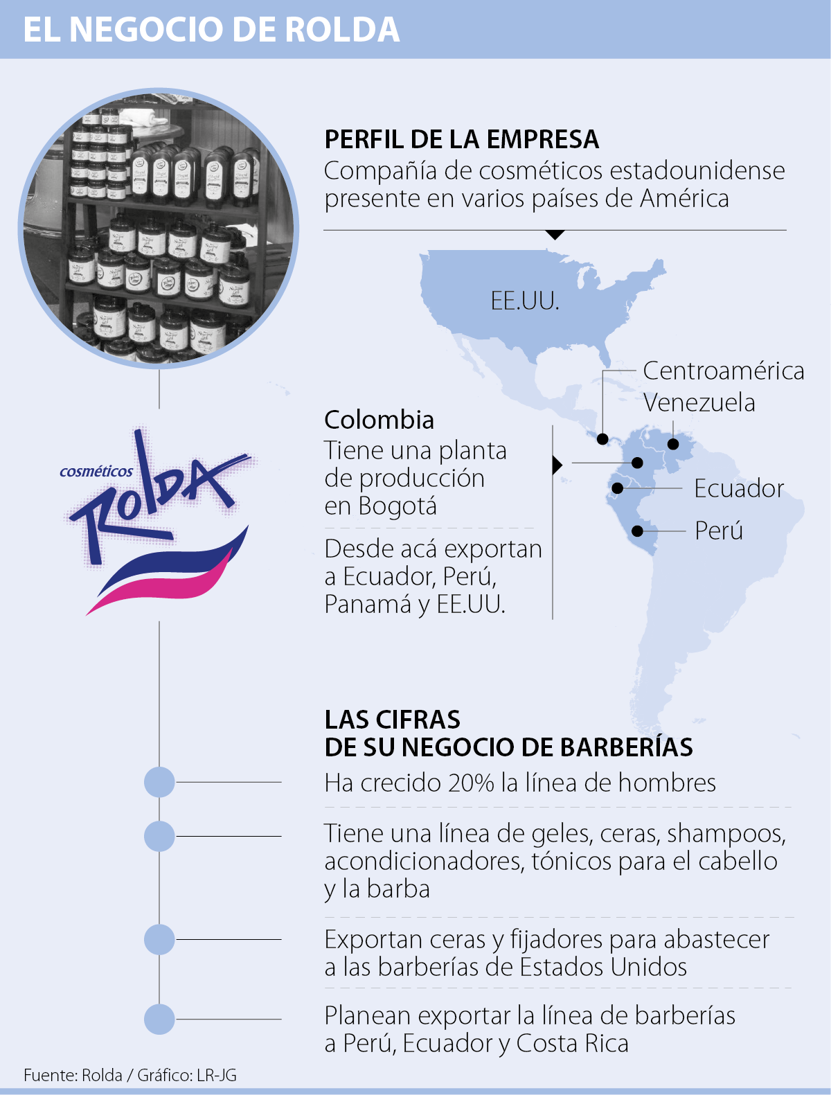 Los hombres empiezan a ganar ventaja como consumidores de la industria cosmética, y un ejemplo de eso es Rolda. La empresa estadounidense, con oficinas y fábrica en Colombia, se encamina a que este año 10% de las ventas locales correspondan a la línea de barberías, un segmento que ha crecido 20% en el último año.