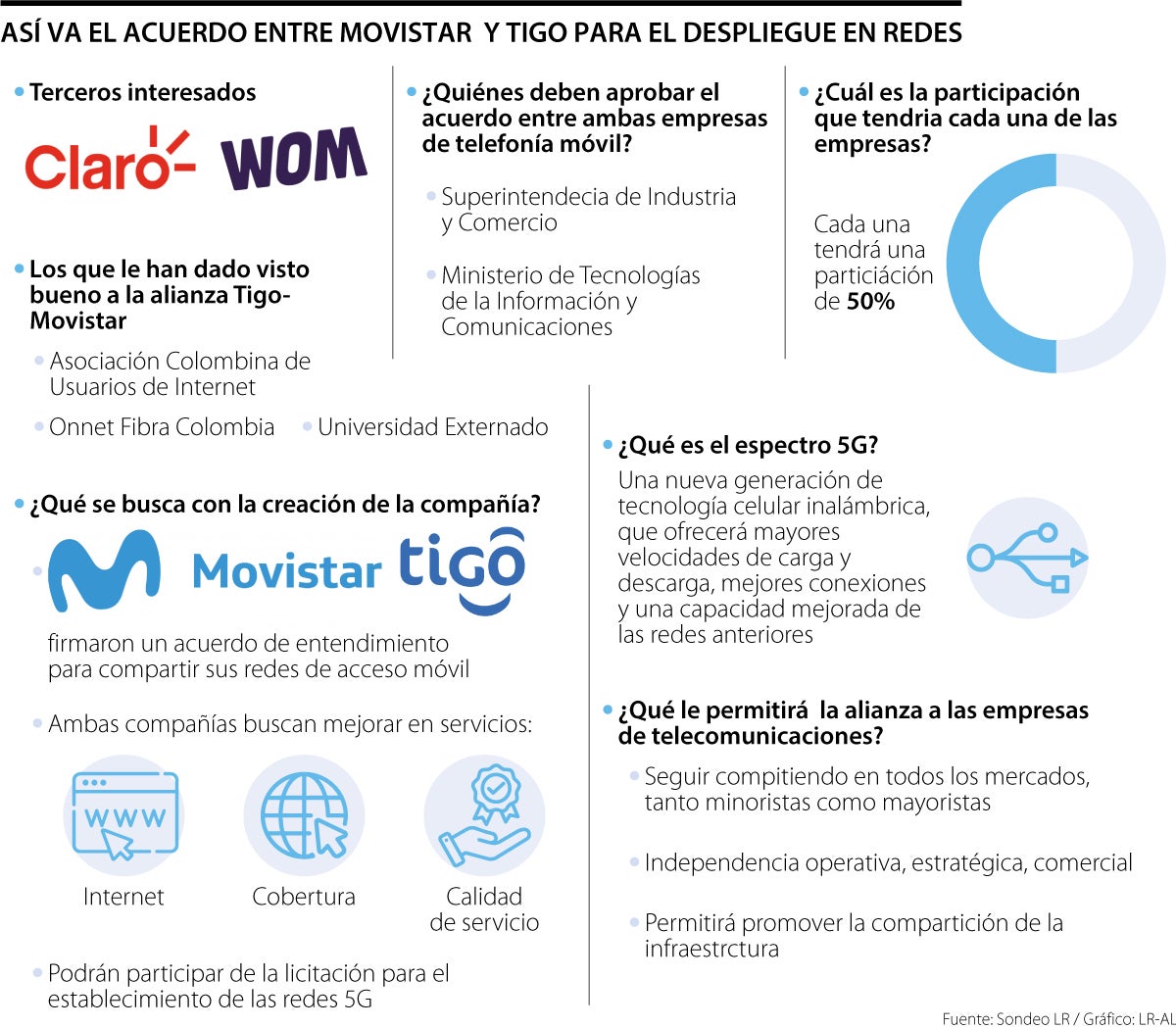 Fuentes cercanas al proceso, le dijeron a LR que el caso de Tigo y Movistar no es una fusión, sino que es un acuerdo de compartición en las redes de accesos móviles, ya que van a compartir las antenas.
