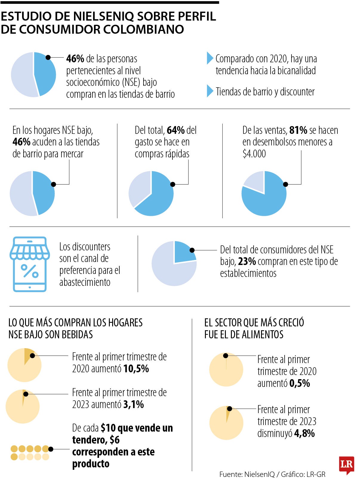 Los hábitos de consumo de los colombianos han cambiado considerablemente en los últimos años, la entrada de los hard discounters ha puesto contra las cuerdas tanto a las grandes superficies como a las tiendas de barrio. Aún así, un estudio de NielsenIQ reveló que 46% de las personas pertenecientes al nivel socioeconómicos (NSE) bajo todavía compra en estos últimos establecimientos.