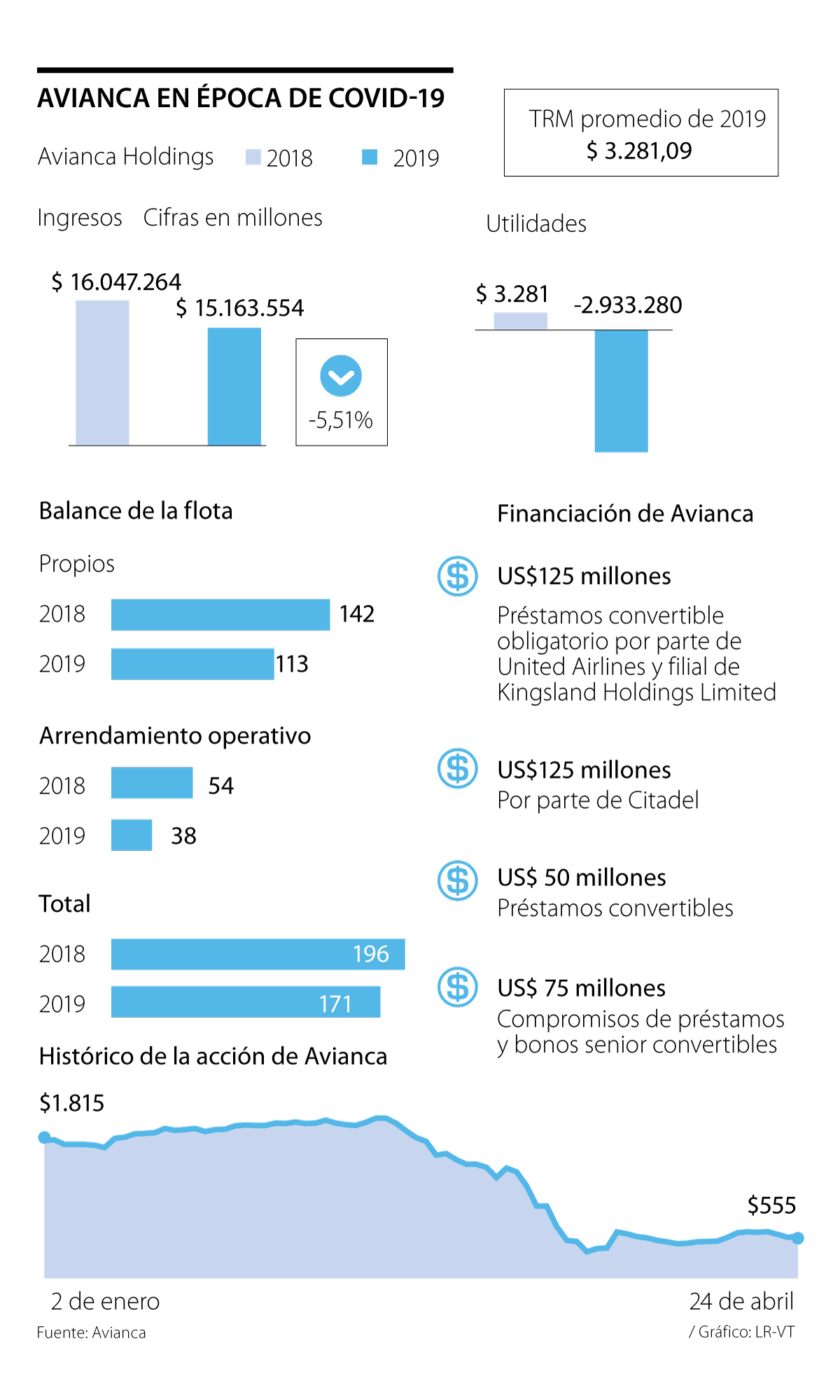 De acuerdo con la Asociación Internacional de Transporte Aéreo (Iata), las aerolíneas en el mundo dejarían de tener ingresos por US$314.000 millones y, en Colombia, la cifra sería de US$5.000 millones. En este sentido, Avianca indicó que debido al poco flujo de caja ha tomado medidas como reducir todos los gastos de capital no esenciales. También está en negociaciones con proveedores, bancos, arrendadores de aviones, entre otros. Igualmente, la empresa suspendió unilateralmente algunos pagos para retener liquidez y ha diferido los pagos de los arrendamientos a largo plazo.
