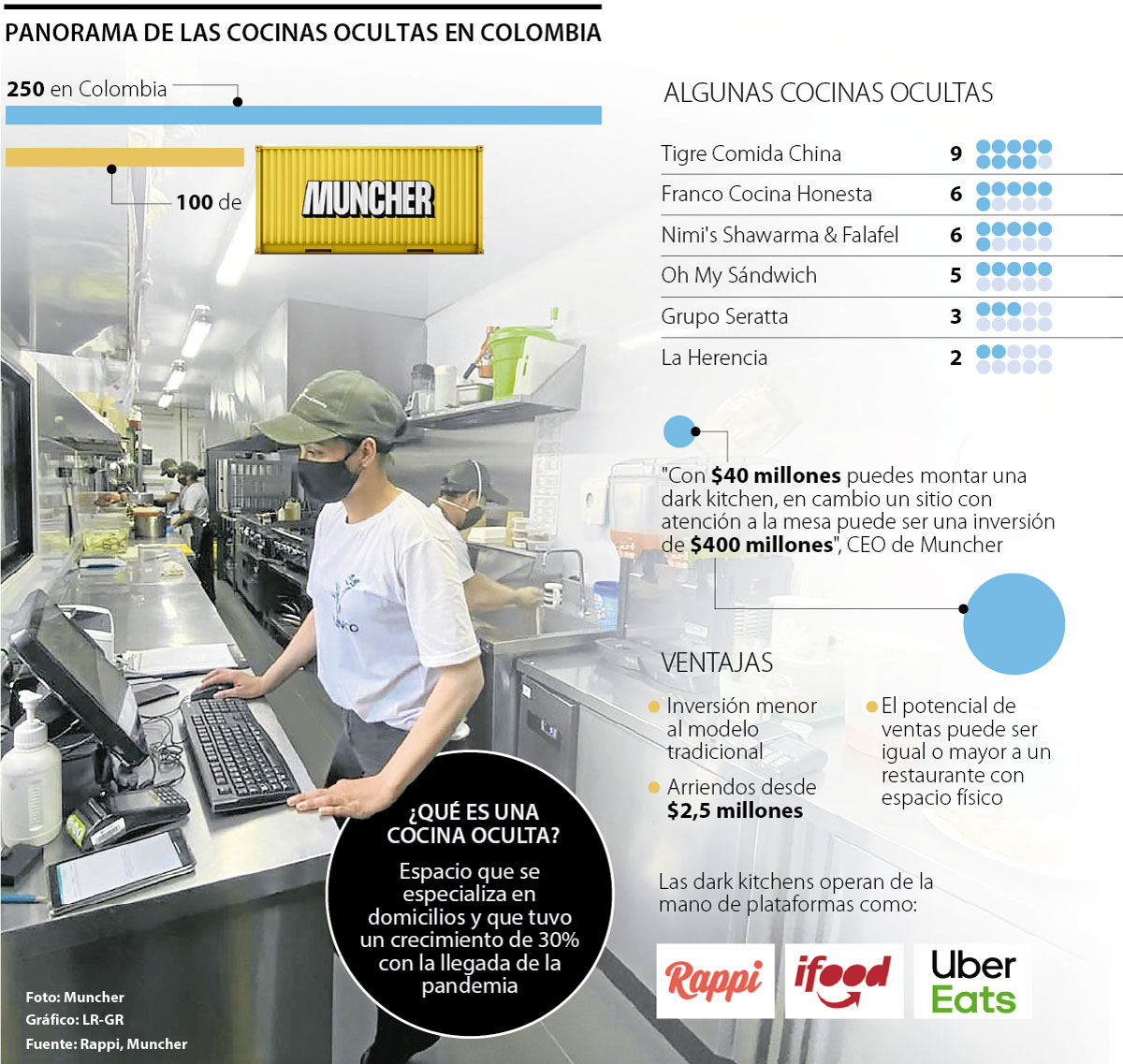 El modelo de las dark kitchens o cocinas ocultas se fortaleció con la llegada de la pandemia y se convirtió en un boom, ya que, en medio del confinamiento, los colombianos optaron por las compras a domicilio y muchos restaurantes por volcarse a estos pequeños espacios que garantizaban menor costo en sus operaciones.